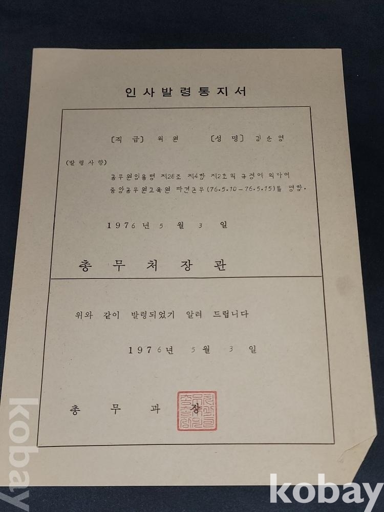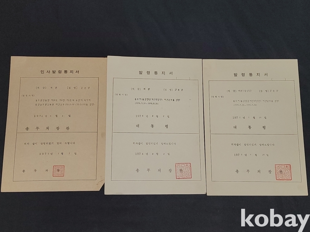 빈티지 희귀한 1976년 총무처장관 인사발령통지서 중앙공무원교육원, 총무처 등 위원직 발령통지서 3종 일괄입니다.