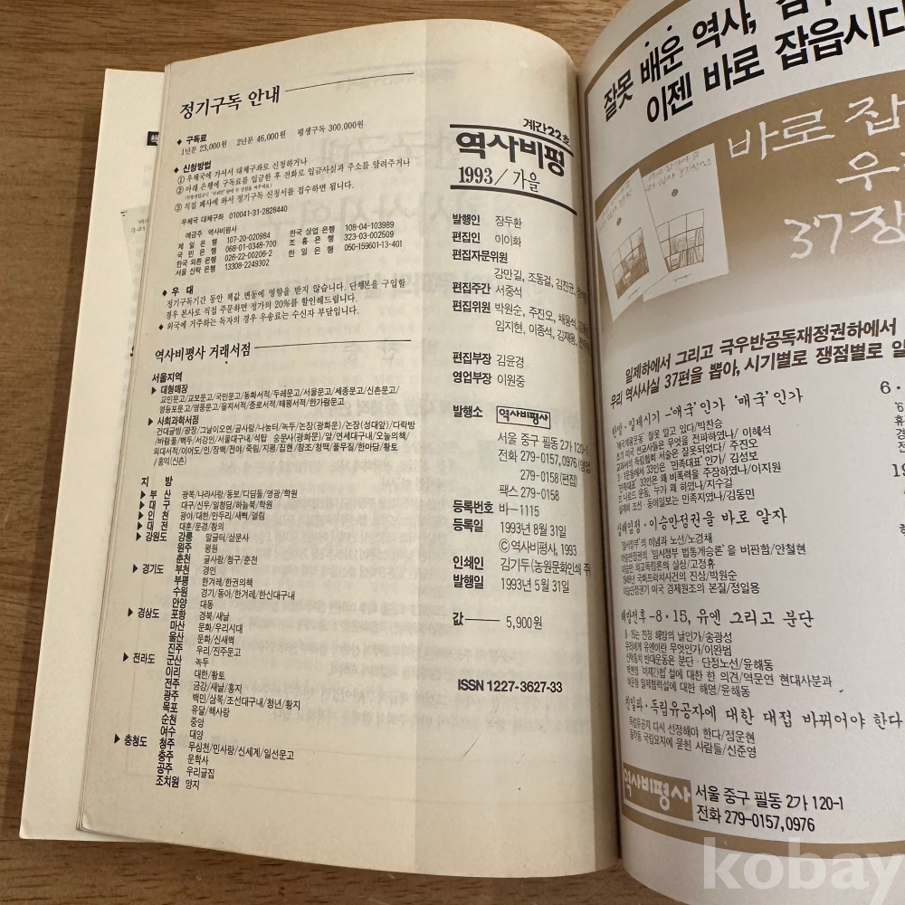 [일제강점기, 불교게의 친일인맥, 저항과 변절] 역사문제연구소, <역사비평 1993 가을>, p. 388 상태 중급(사진참조)