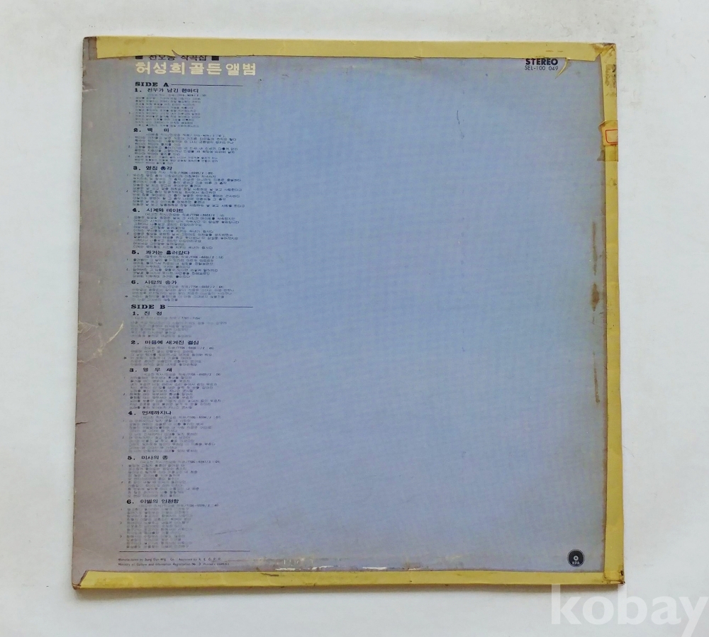 | 자켓상태 | EX : 약간의 마모, 모서리 찢김 존재 | 음반상태 | EX : 재생에 영향 없는 가벼운 기스 존재 | 발매정보 | 알수없음 | 가사지여부 | 무 |