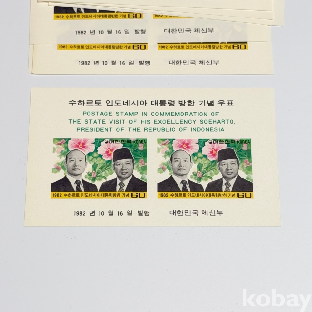 1982년 수하르토 인도네시아 대통령 방한 기념 우표 시트 (10매)