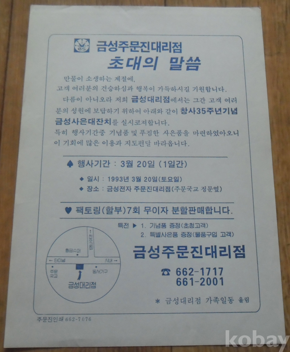 전단지: 1993년 금성주문진대리점 초대의 말씀