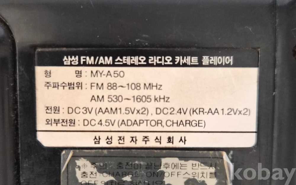 삼성 MY-A50型 FM/AM 스테레오 라디오 카세트 플레이어 이며