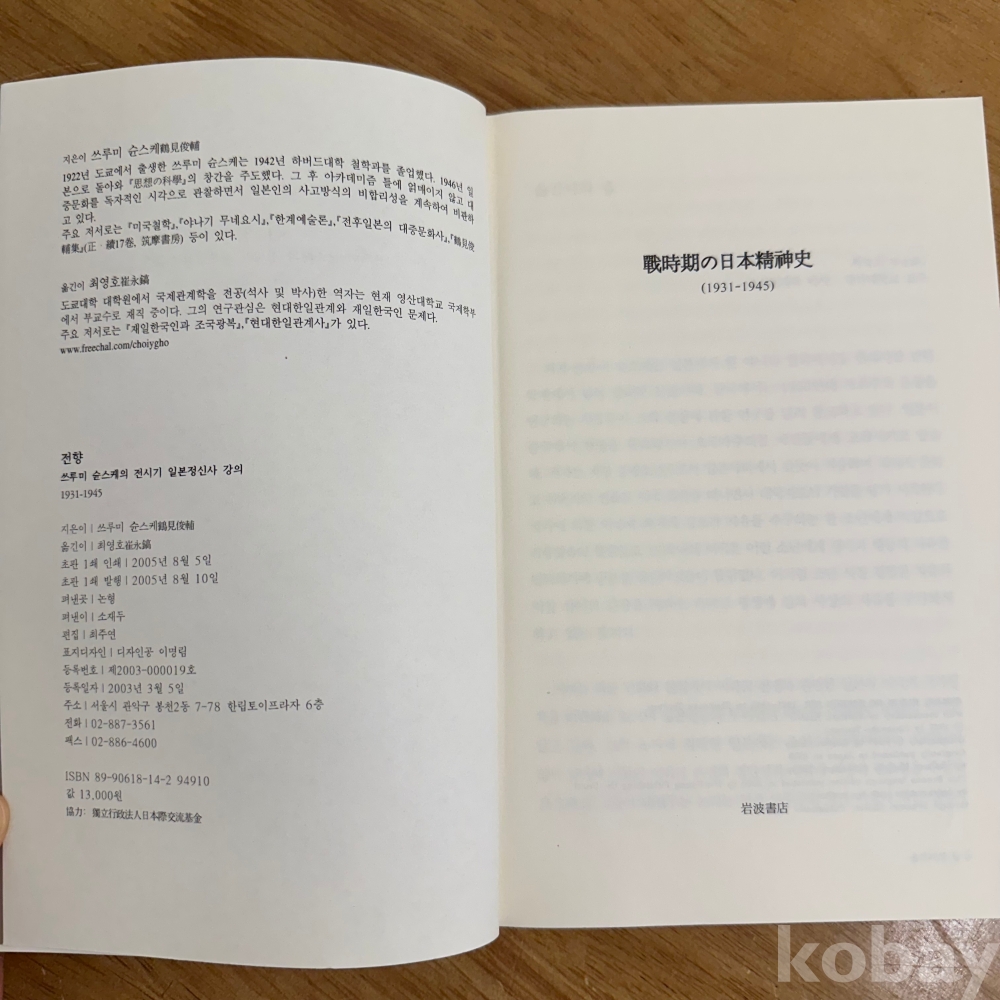 [일본현대사, 군국주의, 전향] 쓰루미 슌스케 저, 최영호 역, <전향 - 쓰루미 슌스케의 전시기 일본 정신사 강의 1931-1945 >, 논형, 2005, p. 244, 상태 중급(사진참조)