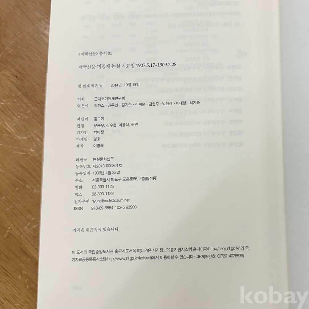 [한국근대사, 대한제국] 강현조 등, <제국신문 미공개 논설 자료집>, 현실문화, 2014, p. 764, 상태 중상급(사진참조)