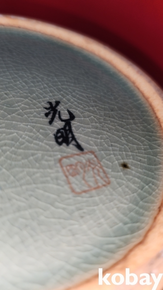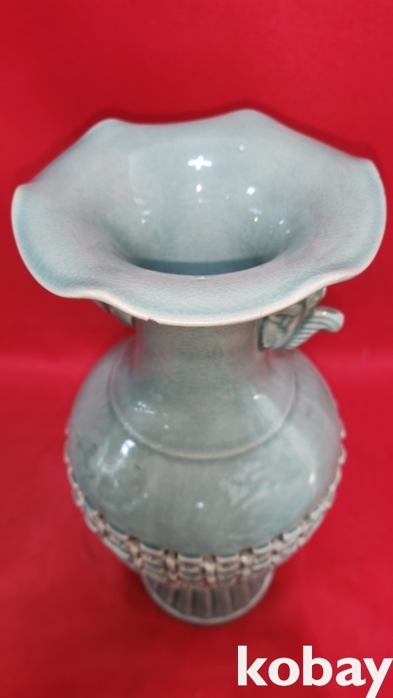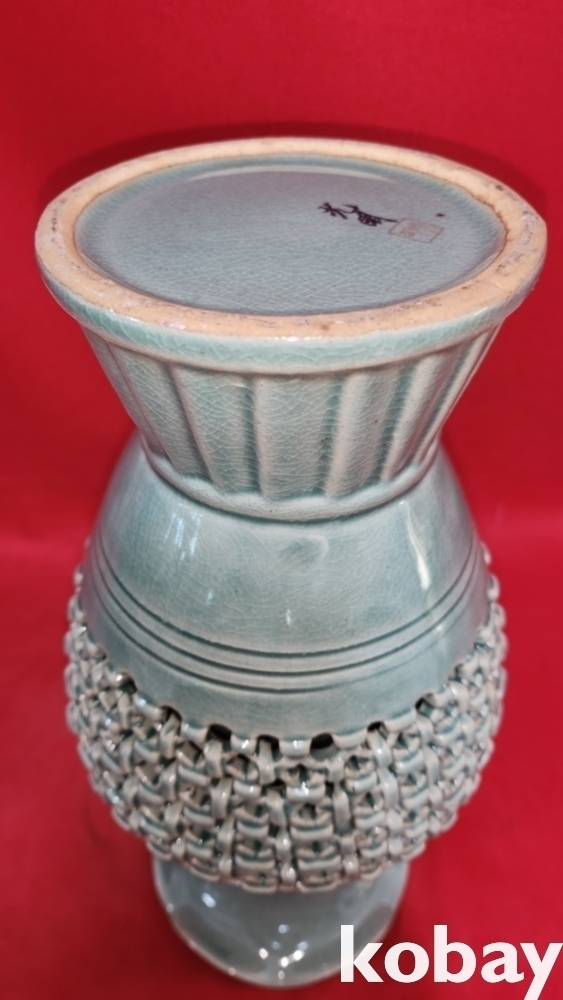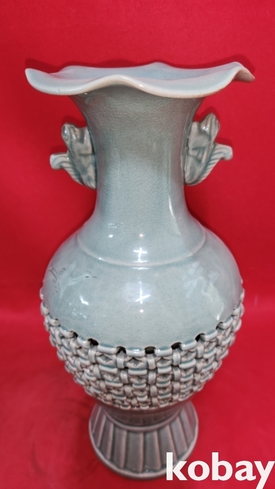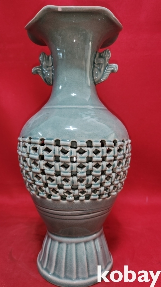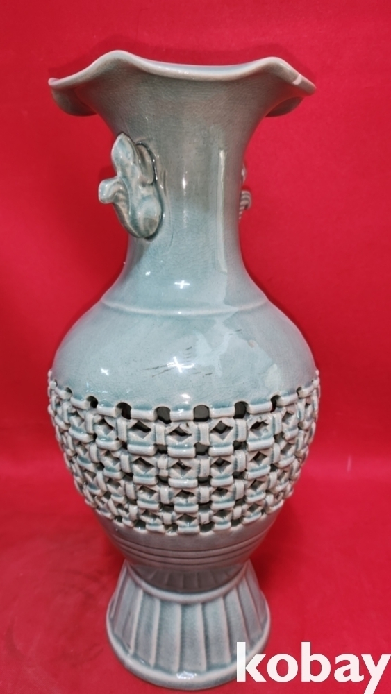 광명도예 비색청자 ( 翡色 靑磁) 투각 구름과 학(雲鶴)문양 화형 광구병입니다,