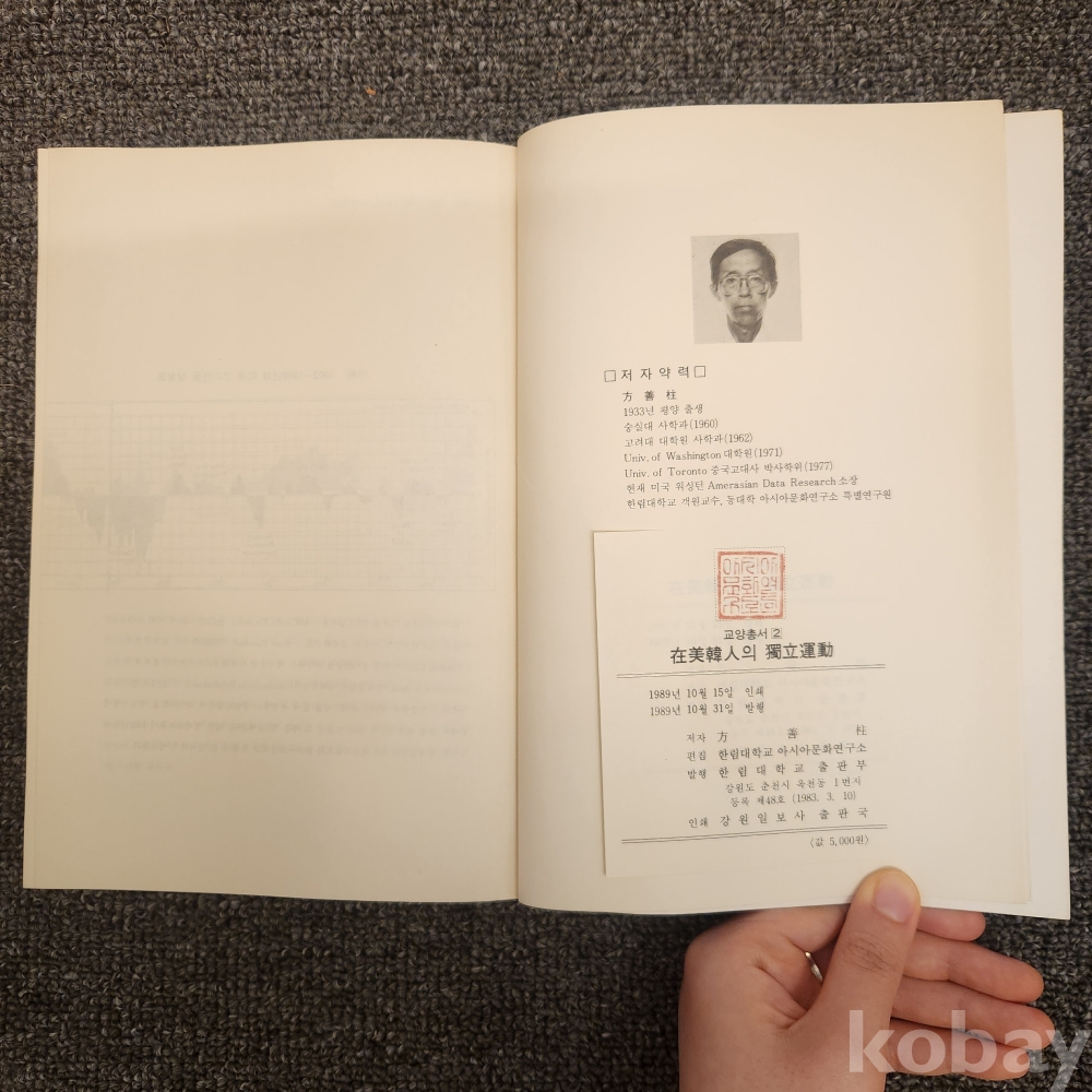 [한국근대사. 한미관계. 독립운동] 방선주, <재미한인의 독립운동>, 아시아문화연구소, 1989, p. 347, 상태 중급(사진참조)