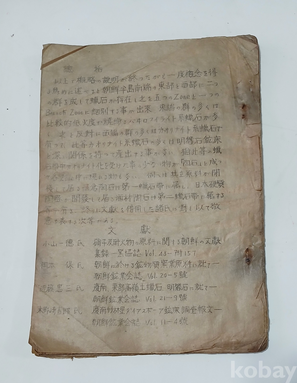 자원 수탈을 목적으로 우리나라 전국에 있는 납석 현황에 관하여
