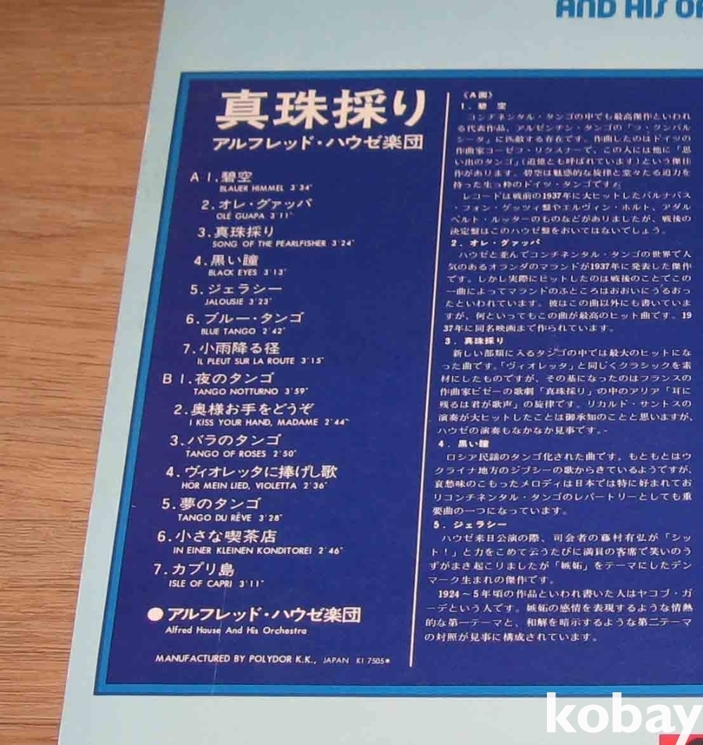 알프레드 하우제 & His Orchestra - Song Of The Pearlfisher LP / 엘피 음반