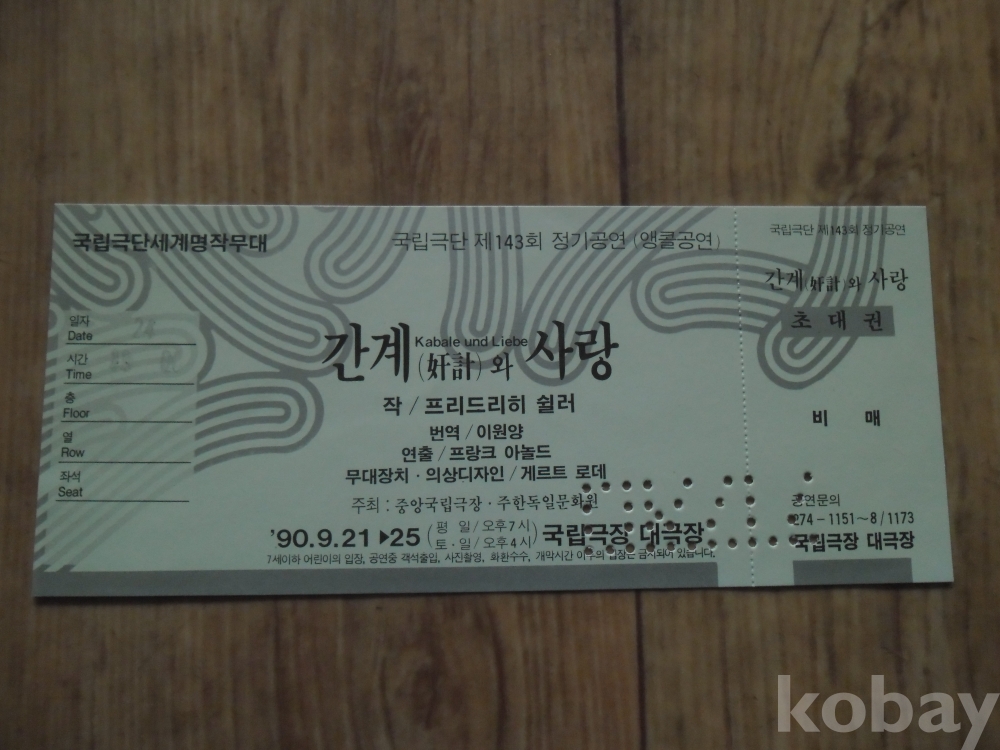 각종 티켓: 1990년 간계와 사랑(국립극장)