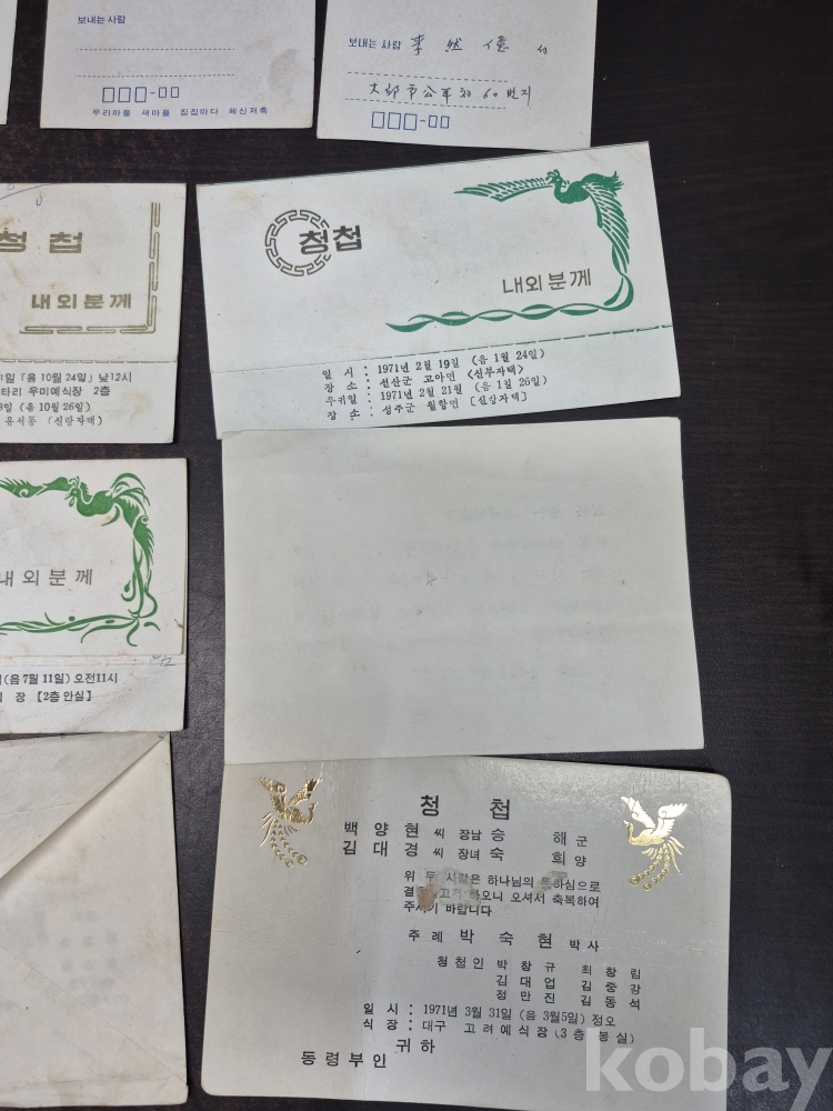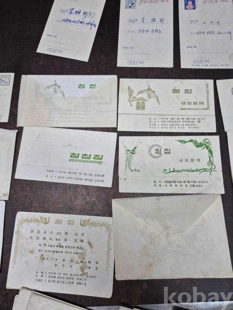 1971년 사용제 엽서14점과 1970년대 청첩장 40장 일괄 11*14
