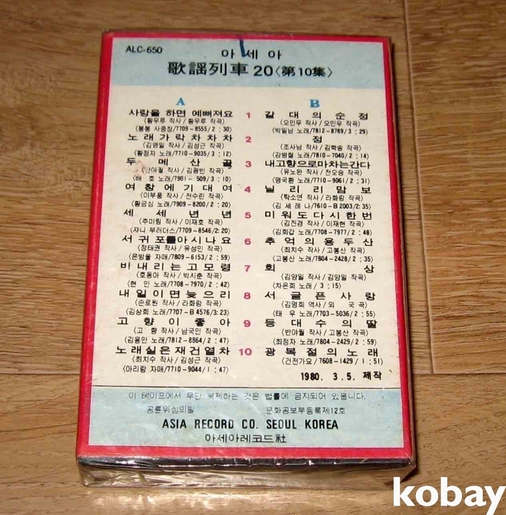 미개봉품 / 아세아 가요열차20 제10집 카세트 테이프입니다.(1980년)