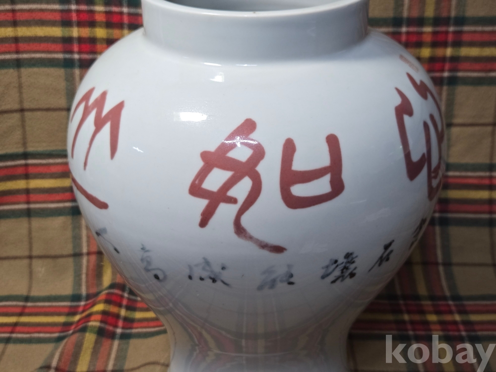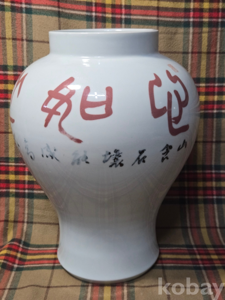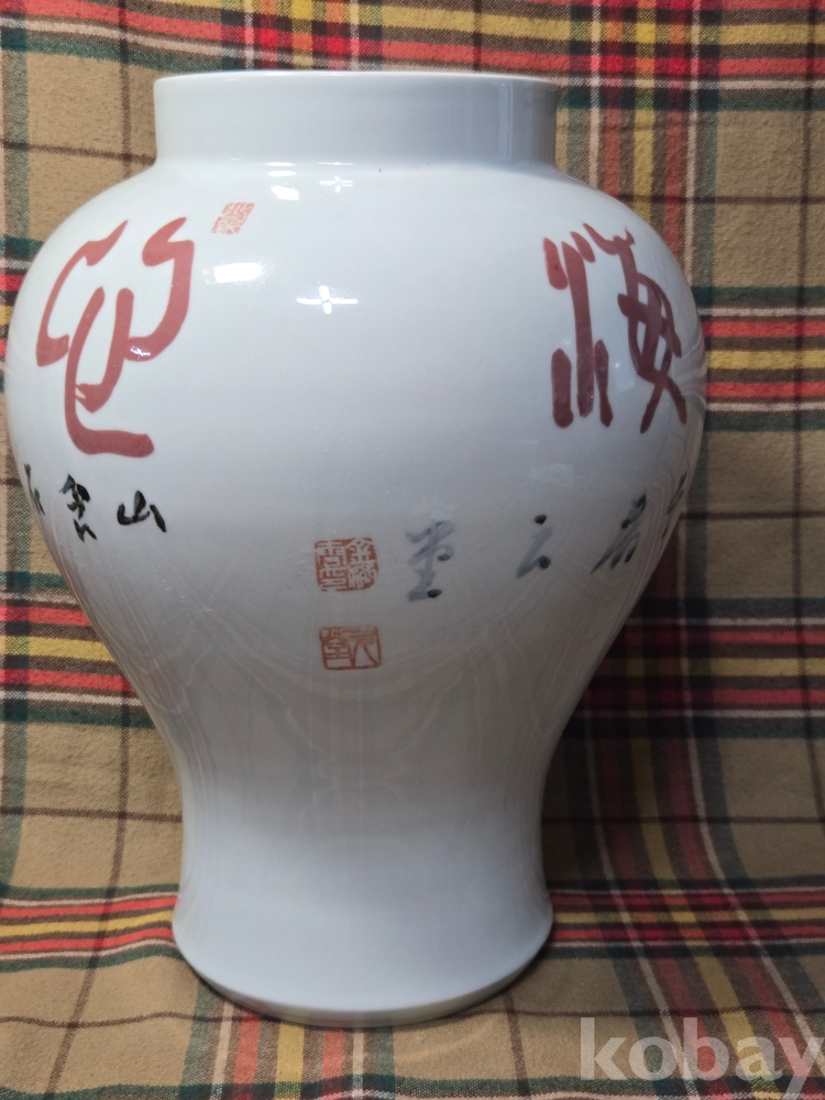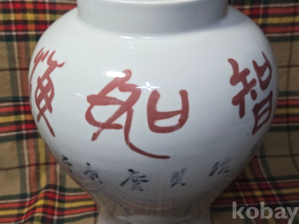 국전특선수차례, 강진출신으로 한국현대서예의 거장으로 손꼽히는 원당 김제운선생의 친필휘호가 새겨진 백자충입니다. 도자기는 현대 고려청자계승의 산실 강진탐진요의 김경진선생작품..