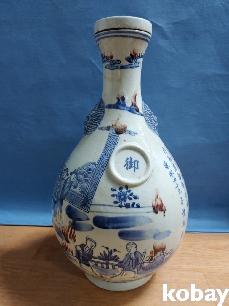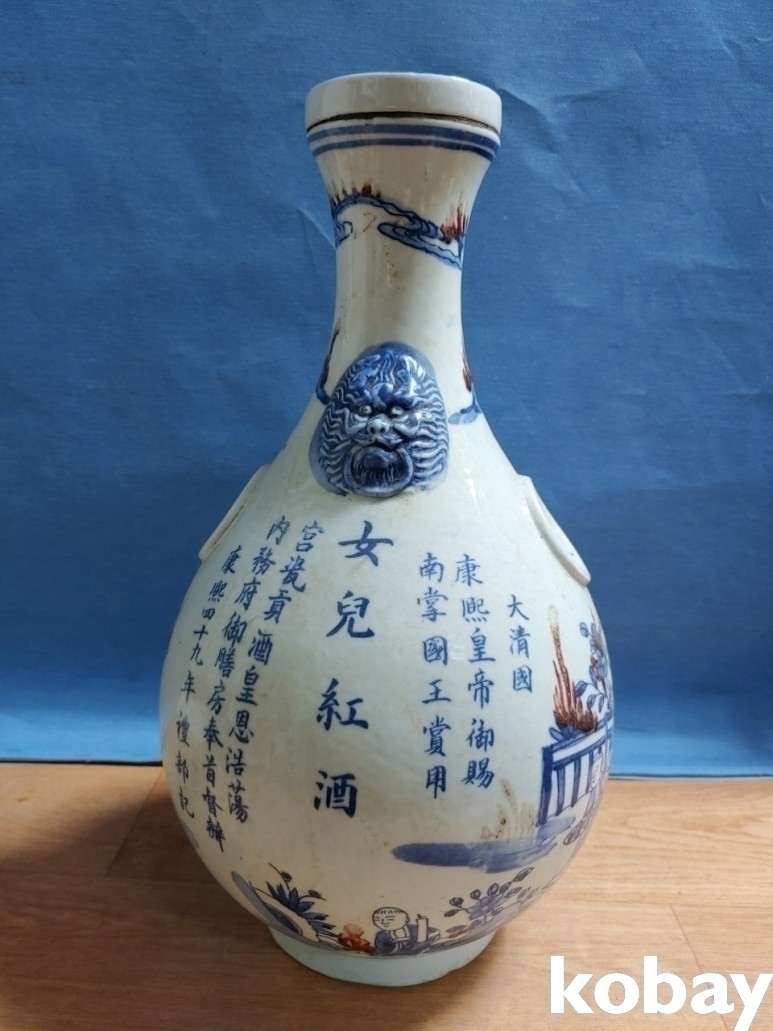 인물 도안이 있는 여아홍주 술 도자기 입니다.
