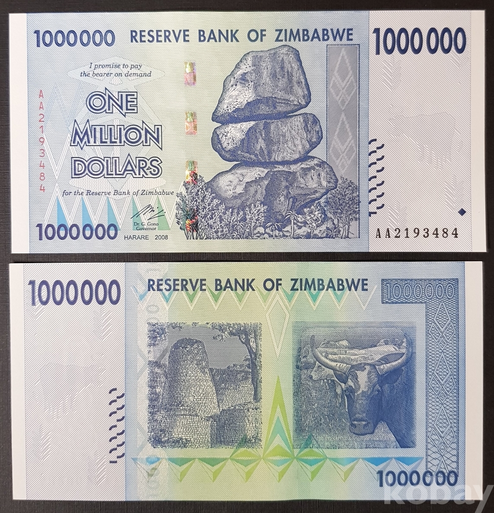 나라 : 짐바브웨 액면 : 1,000,000 달러