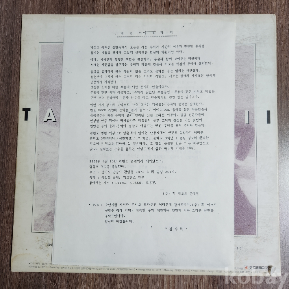 이외 음반상태와 속지유무는 상세정보란에 전부 등록하였으니 확인하시고 입찰하시기 바랍니다.