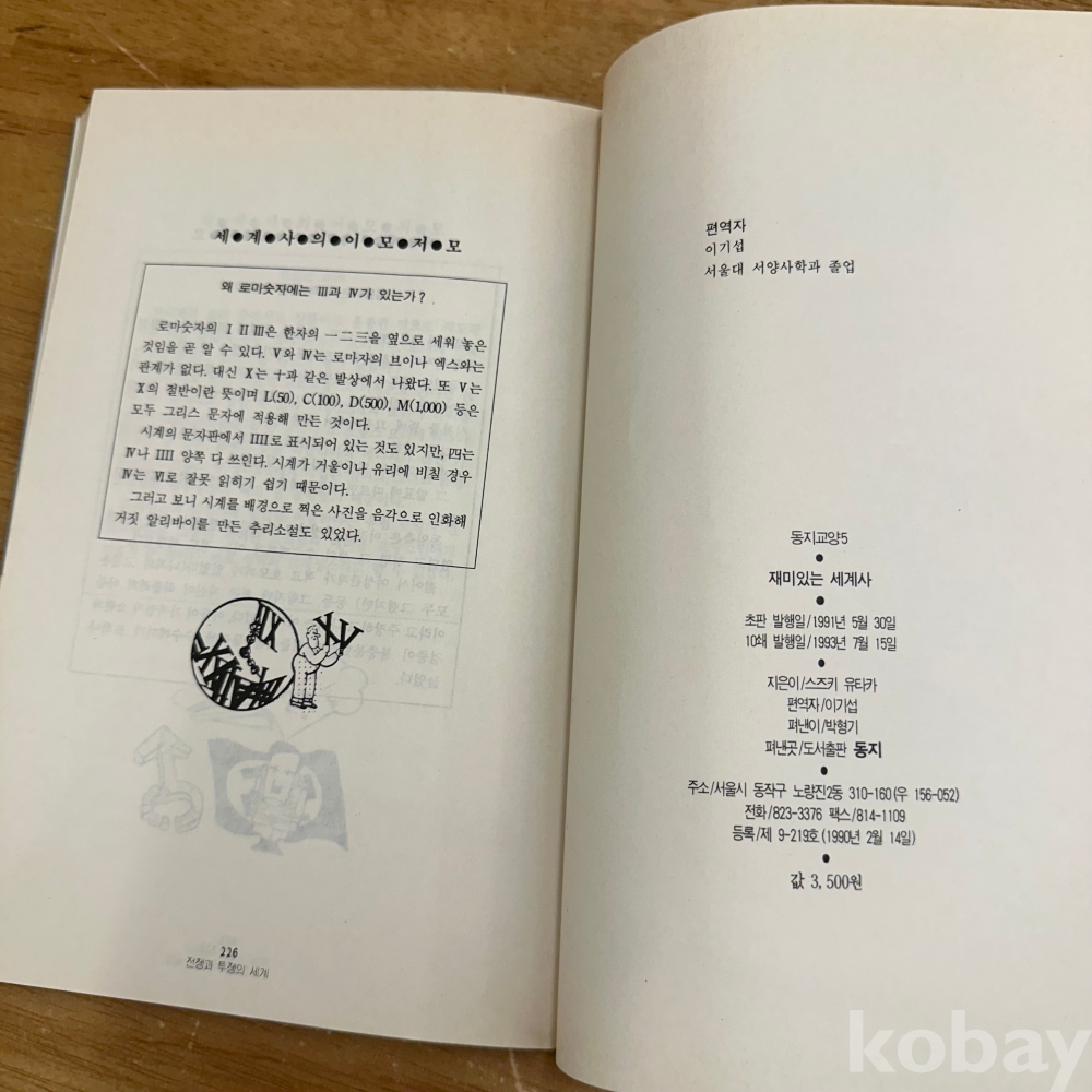 [세계사] 스즈키 유타카 저, 이기섭 편역, <재미있는 세계사>, 동지, 1993, p. 226, 상태 중급(사진참조)