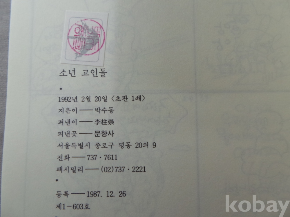 박수동 글,그림, 소년 고인돌,1992년 초판 1쇄