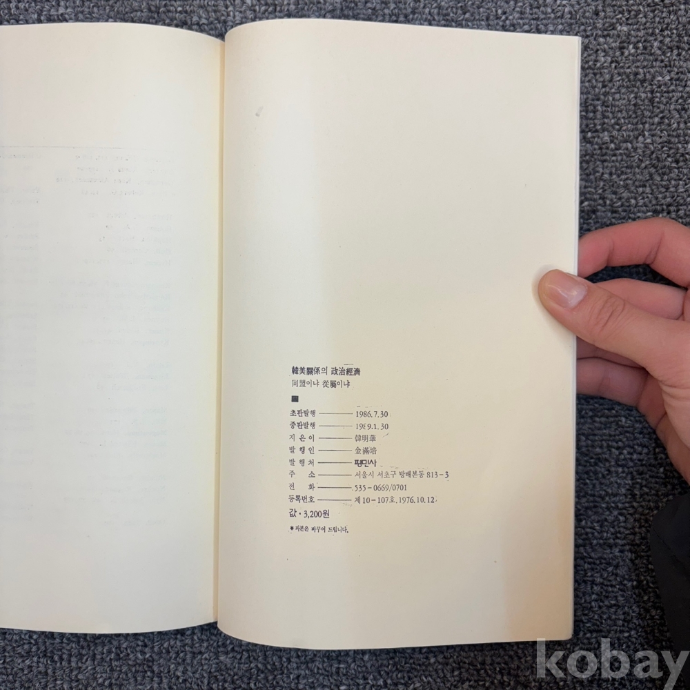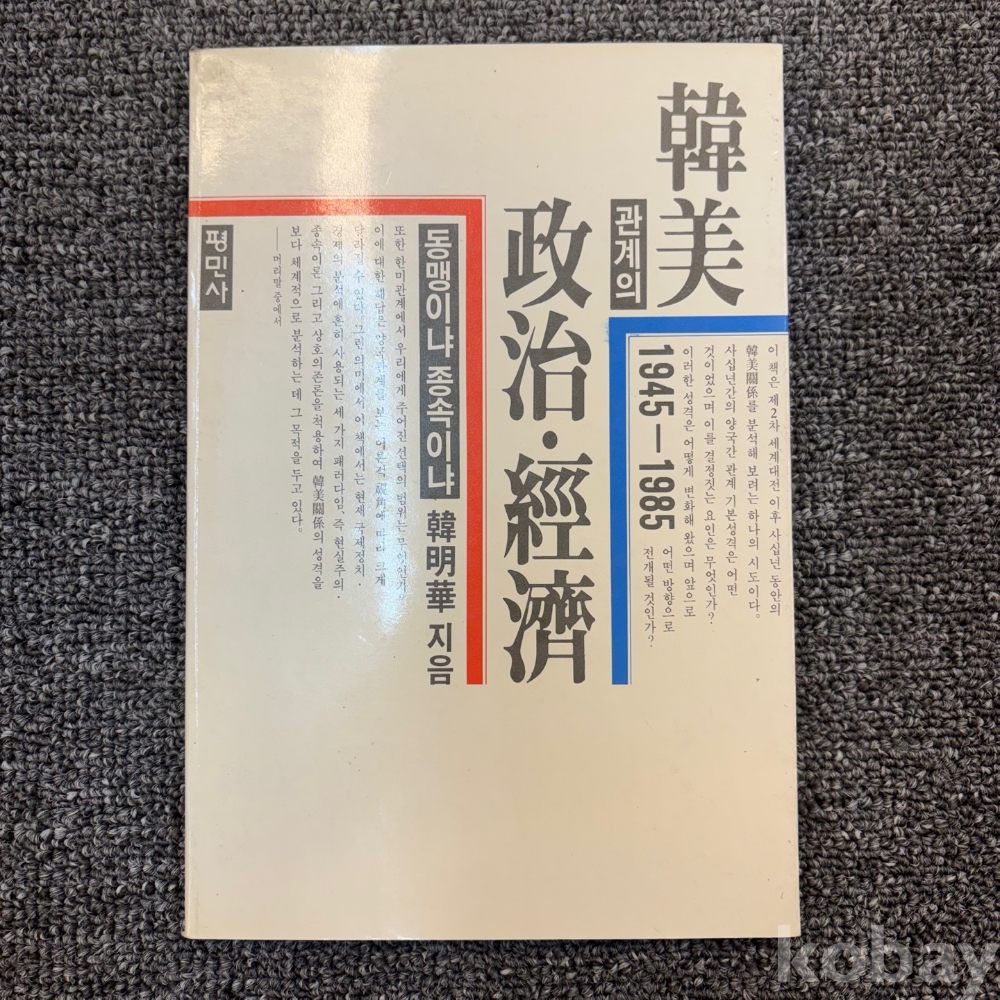 [한국현대사, 한미관계사] 한화, <한미 관계의 정치.경제 1945-1985 : 동맹이냐 종속이냐>, 평민사, 1989, p. 259, 상태 중급(사진참조)
