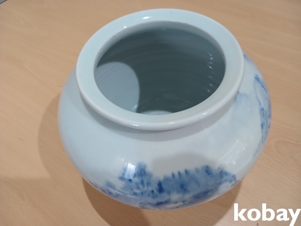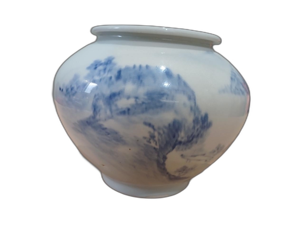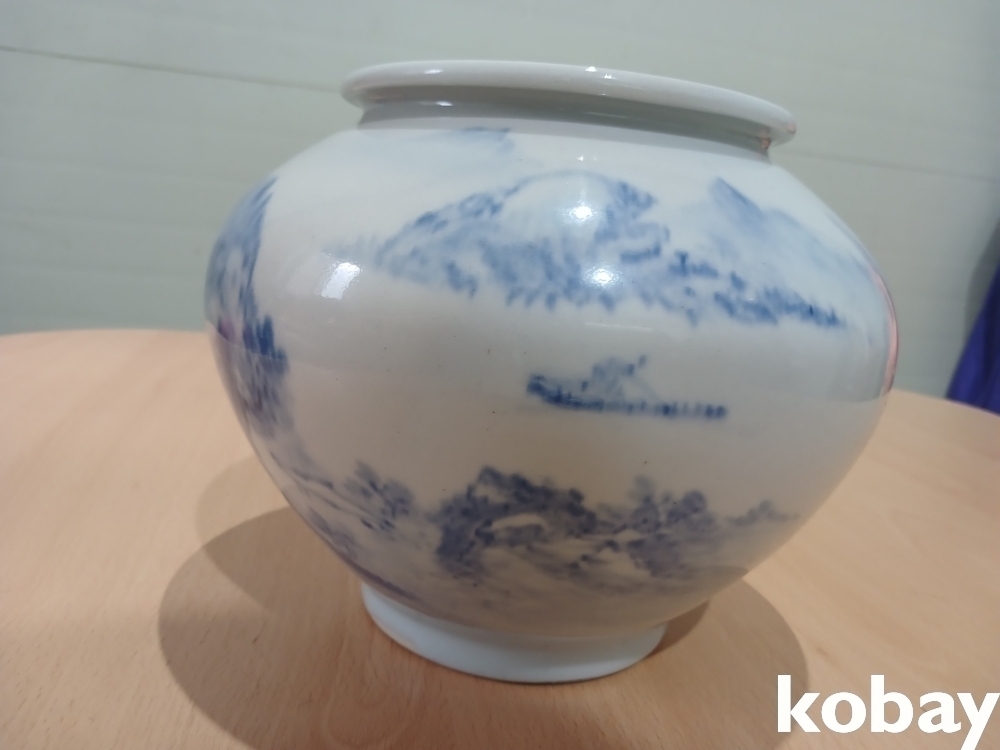 산수 풍경을 아름답게 표현한 달 도자기 입니다.
