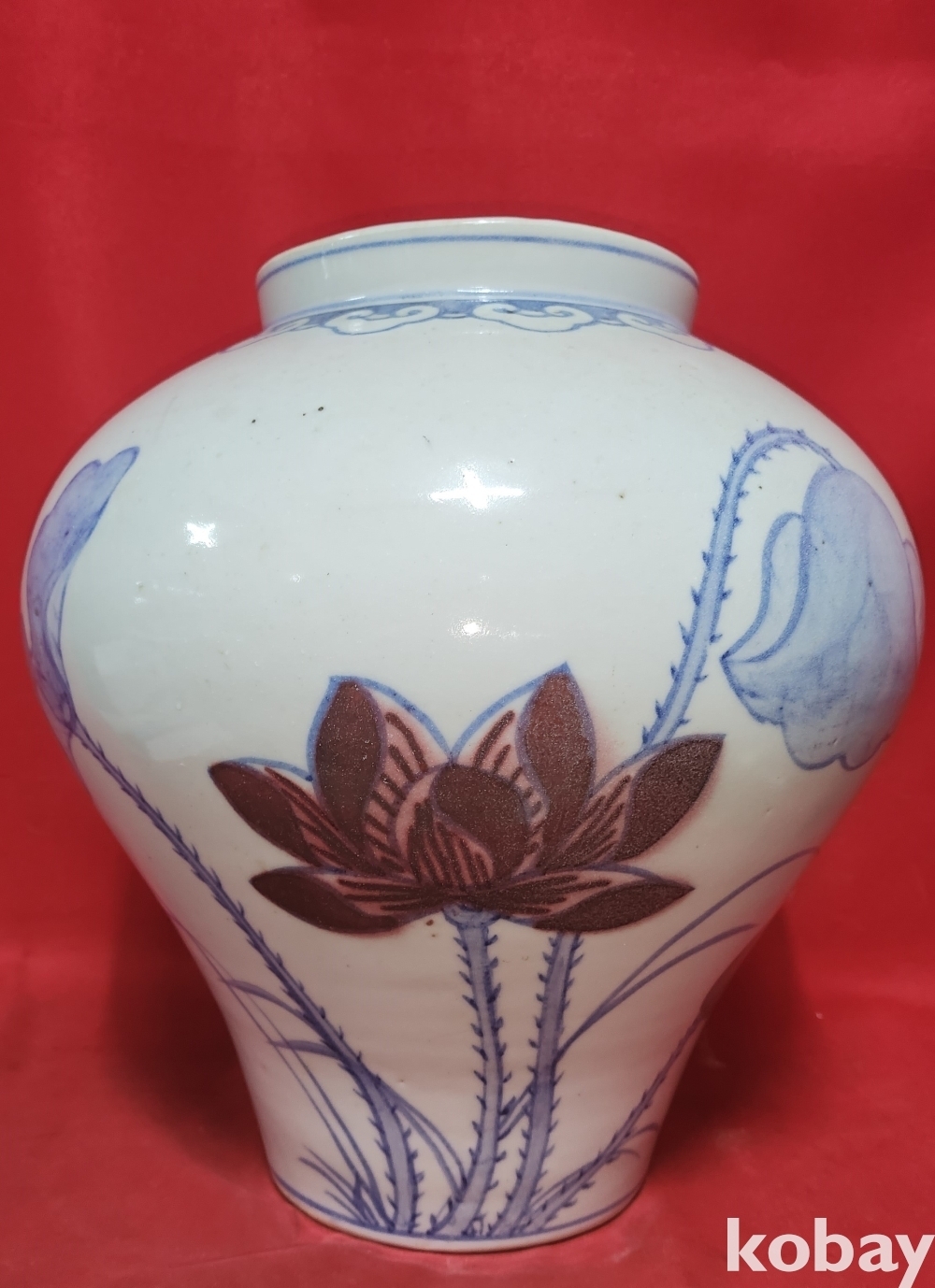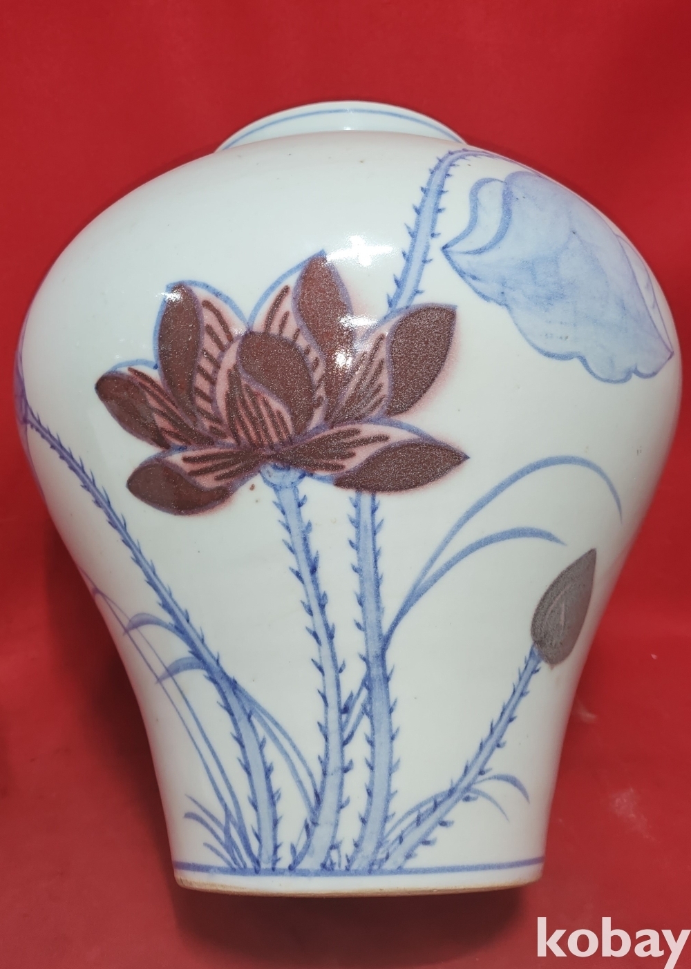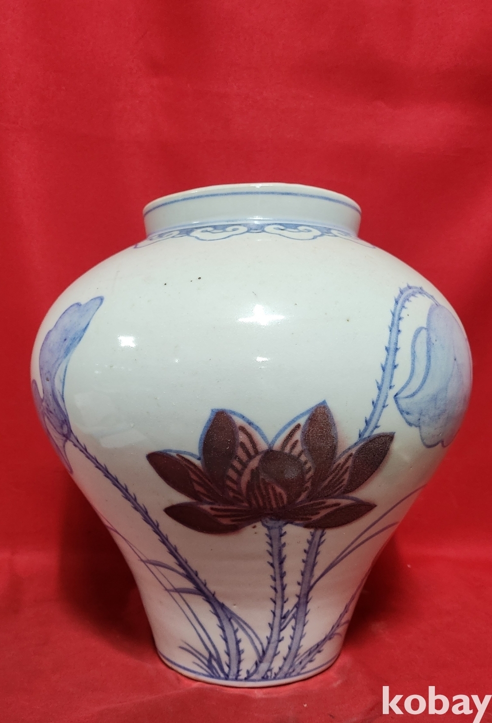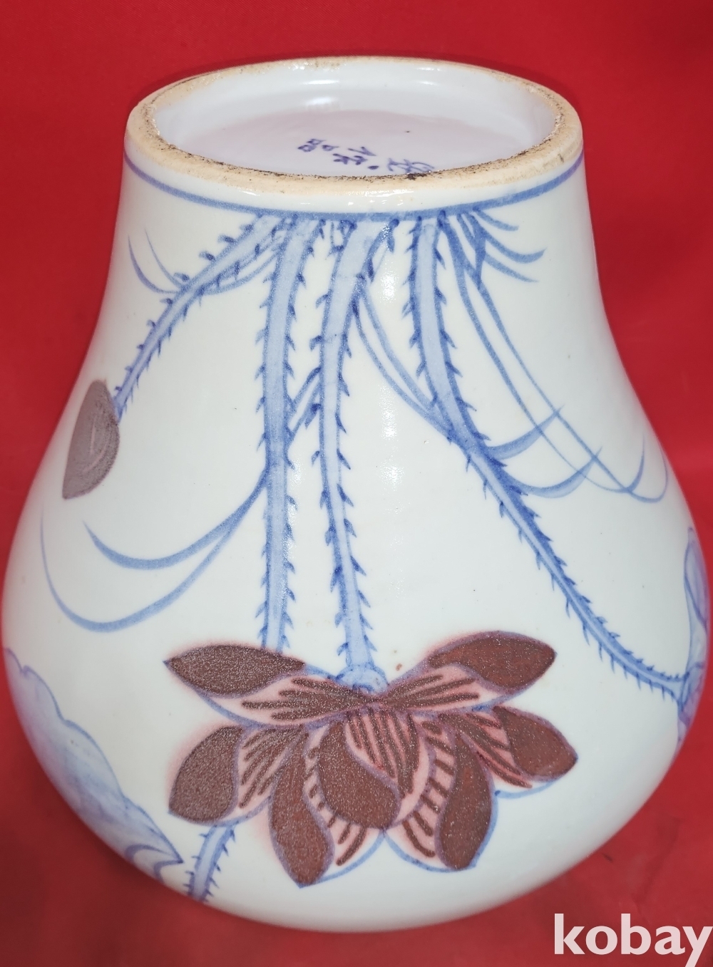 1세대 유명 도예가 호산 안동오 (呼山 安東五) 作 철화 연꽃(蓮花) 문양 항입니다,