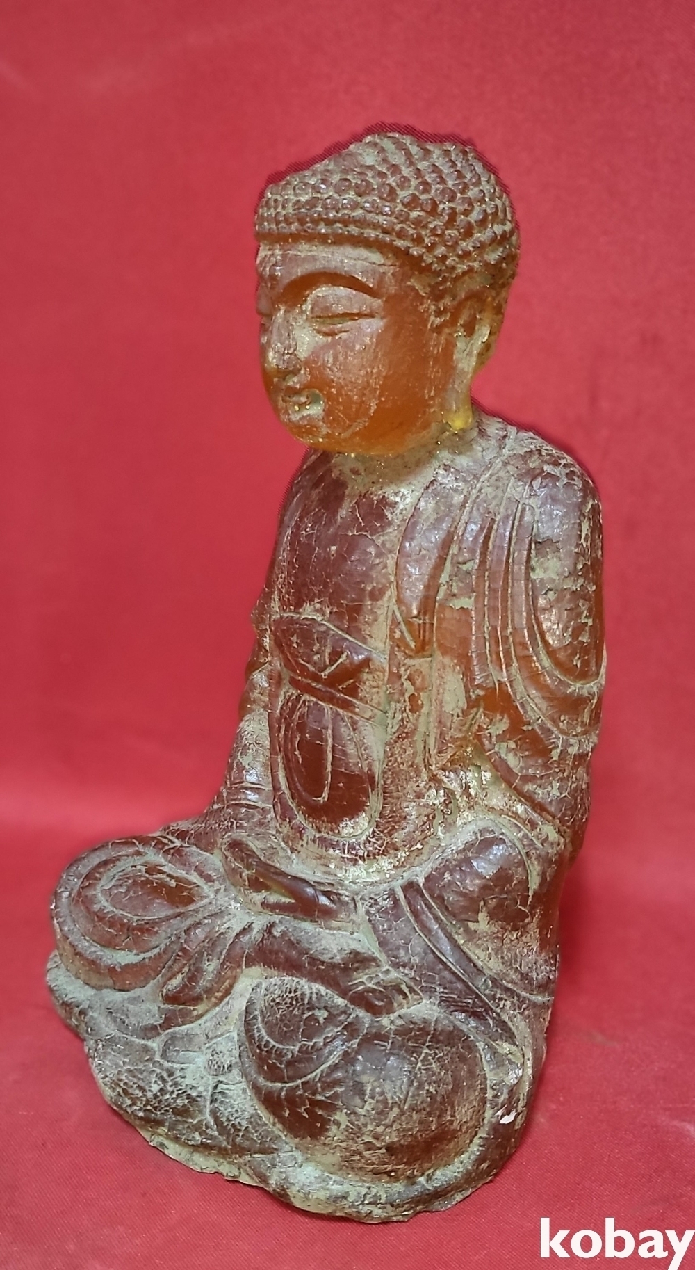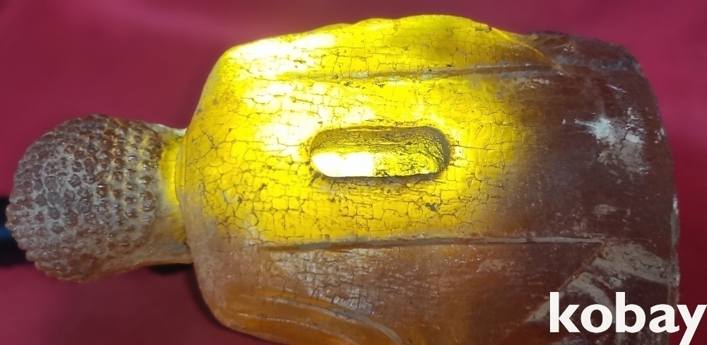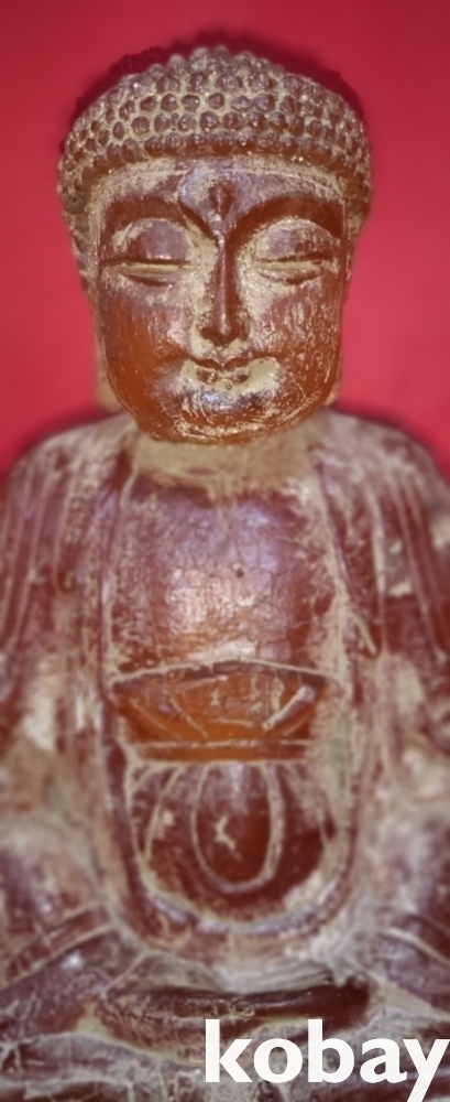 소재를 알 수 없는 불빛이 투과되는 좌불상입니다,