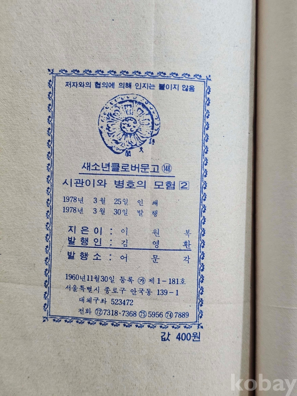 물 품 명 | 시관이와 병호의 모험 2편 / 이원복 만화 / 1978년 / 어문각 |