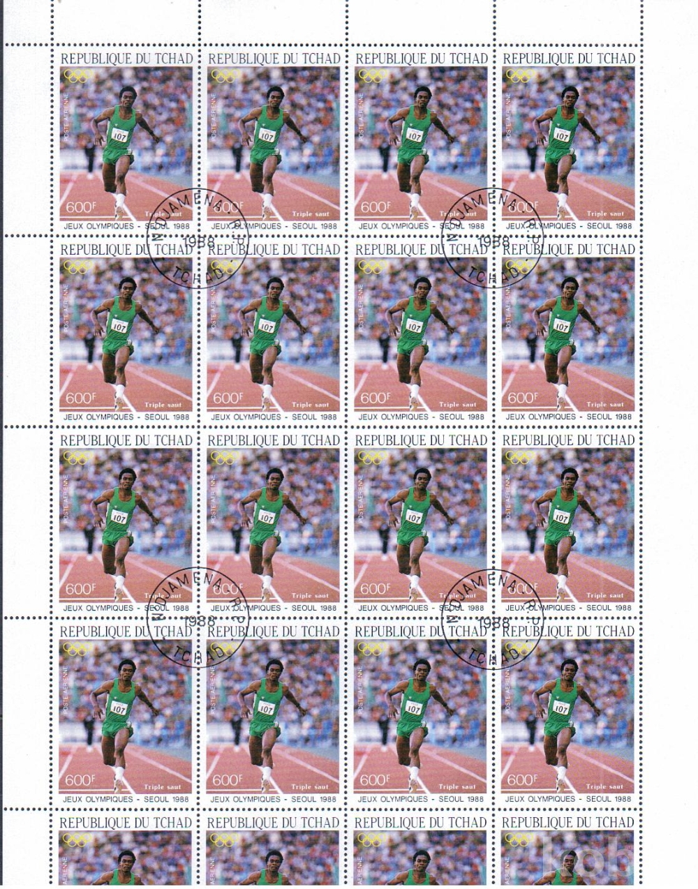 88서울올림픽 챠드 4완 소인전지 [우표.시트 희귀품 ]