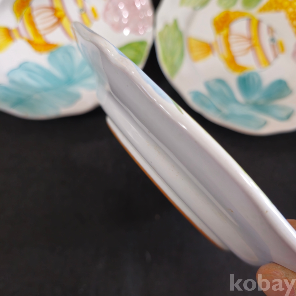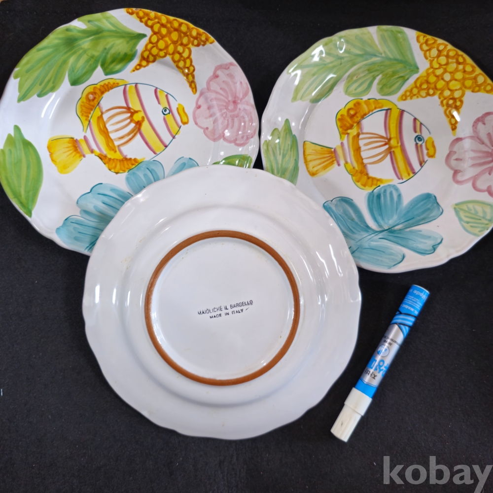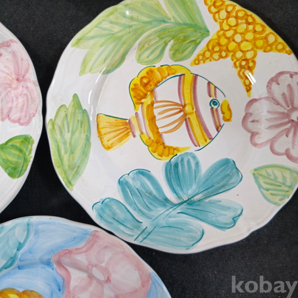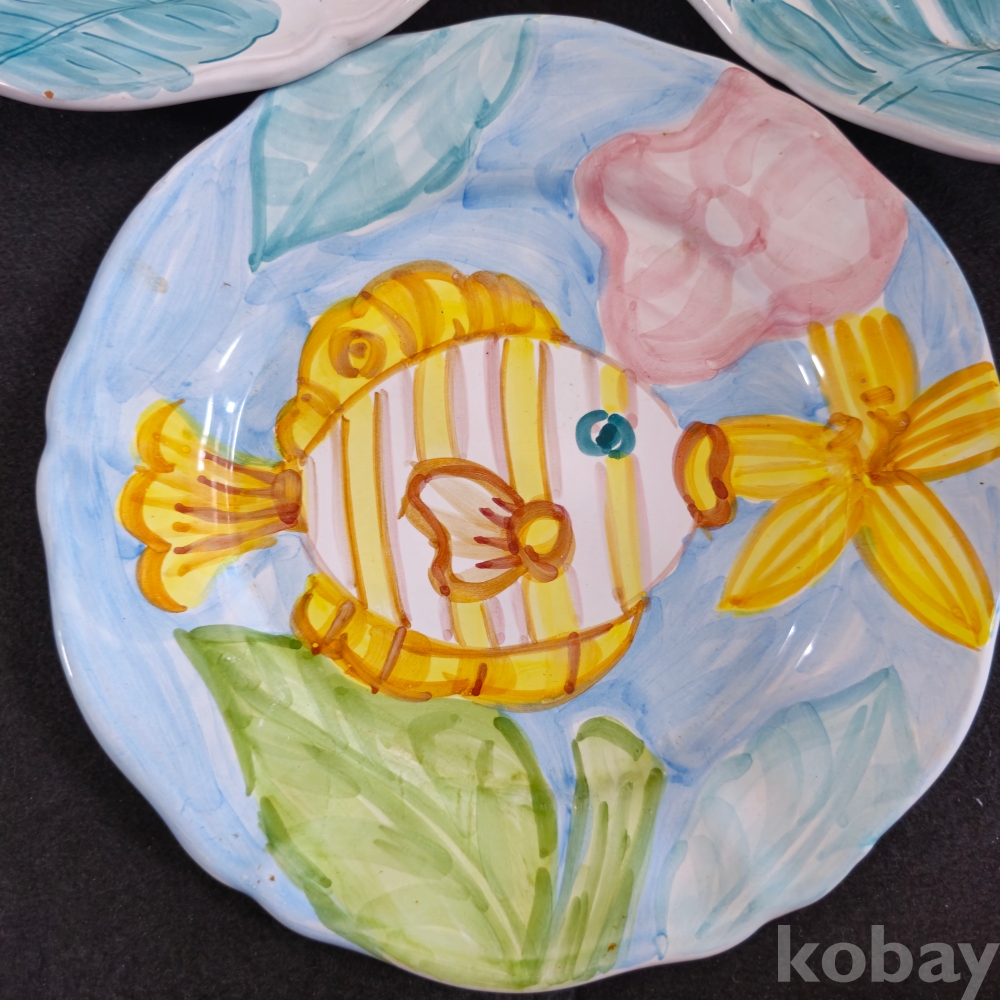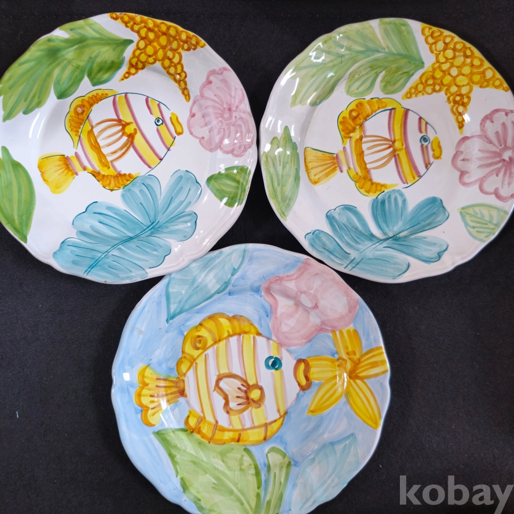(((도자기접시))) 오래전 이탈리아에서만든 물고기그림있는 두터운 도자기 접시 2종 3개 (MADE IN ITALY)