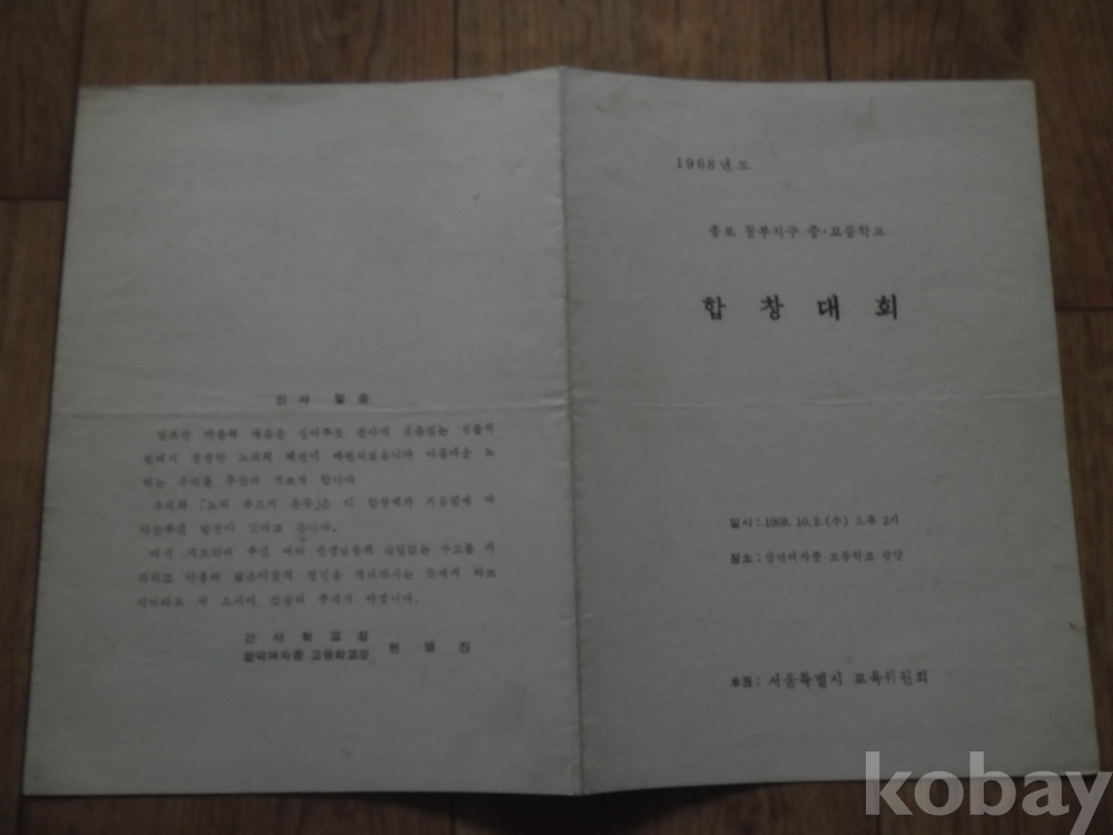 1968년 종로 동부지구 중.고교 합창대회(창덕여중.고 강당)