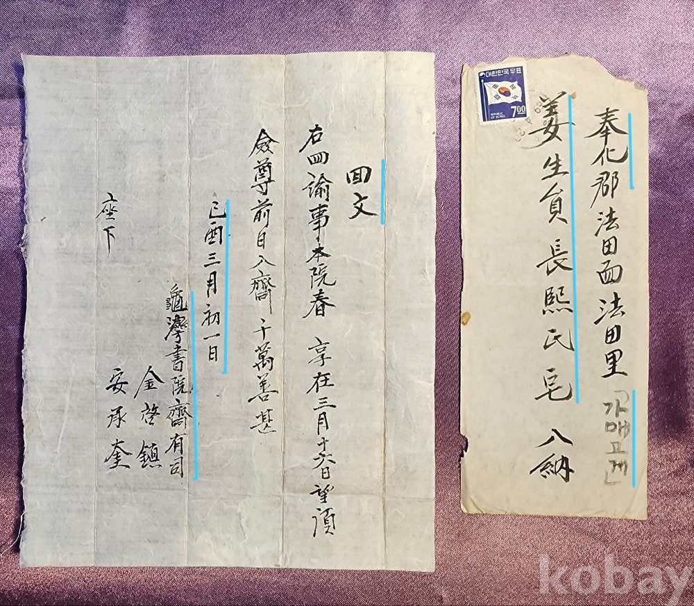 ◈ 봉투에 대한민국 우표 7원짜리 1매가 붙어 있다.
