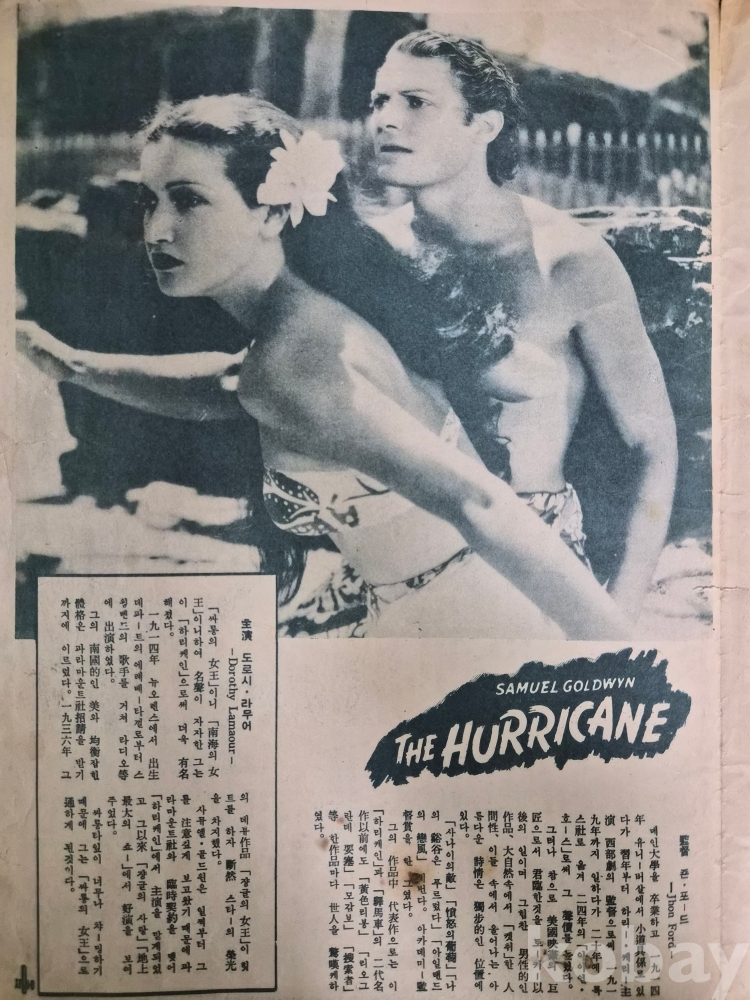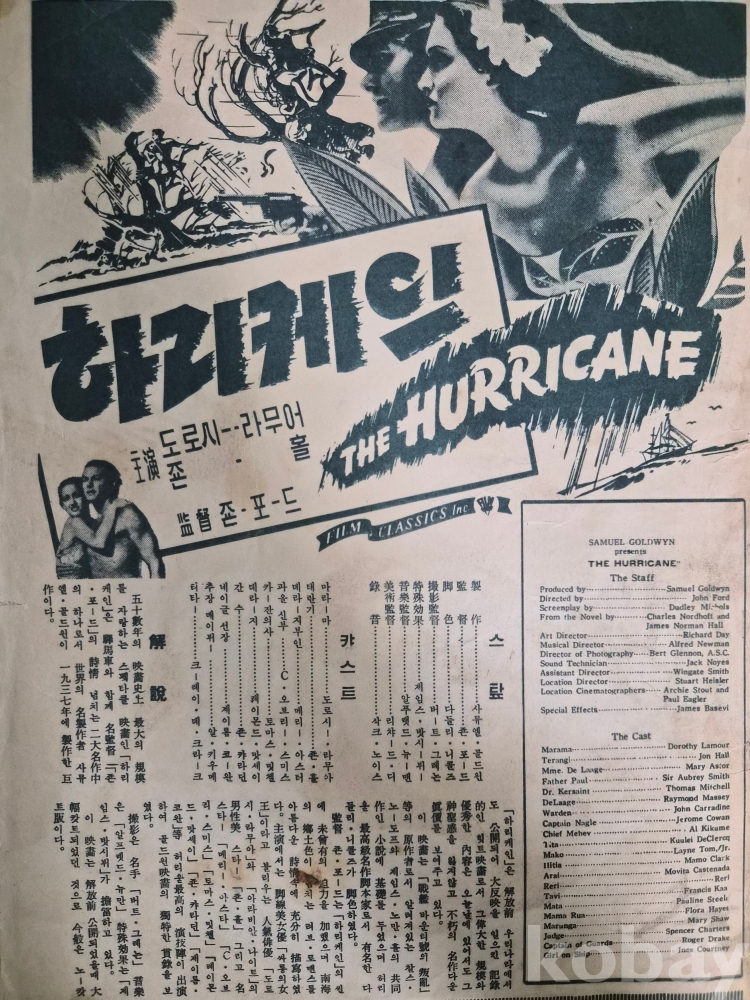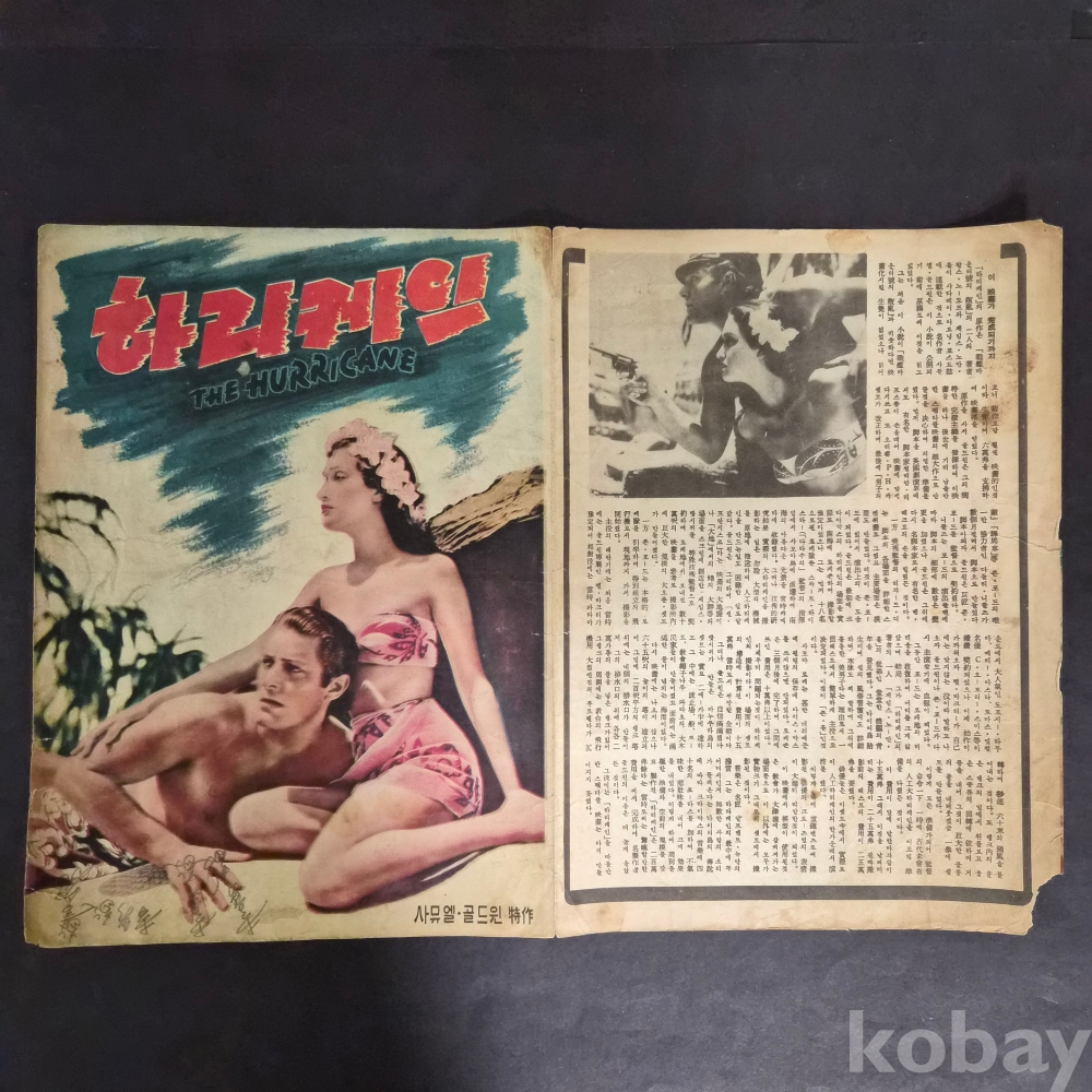 [희귀 근대사 자료] / (영화포스터/영화카드/리플렛/광고카드 등) 1937년 / 하리케인(도로시 라모어 죤 홀)