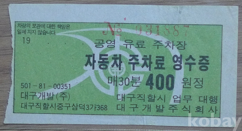 대구 공영 유료 주차장 자동차 주차료 영수증