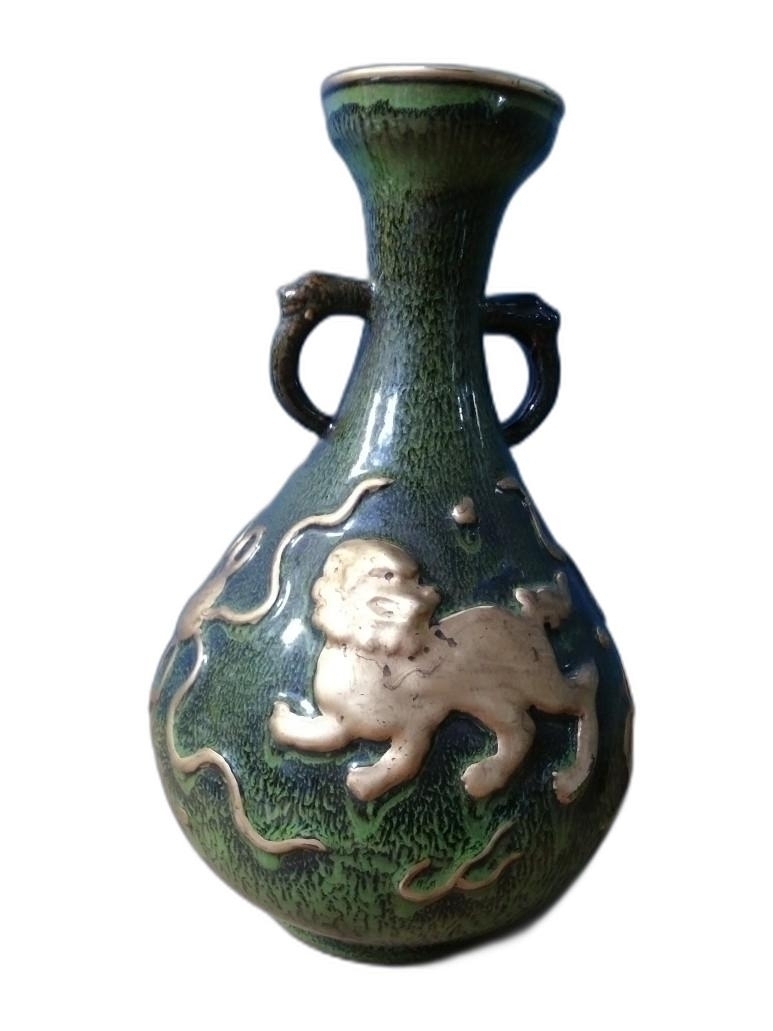 금분칠로 멋을 낸 양이 도자기 입니다.