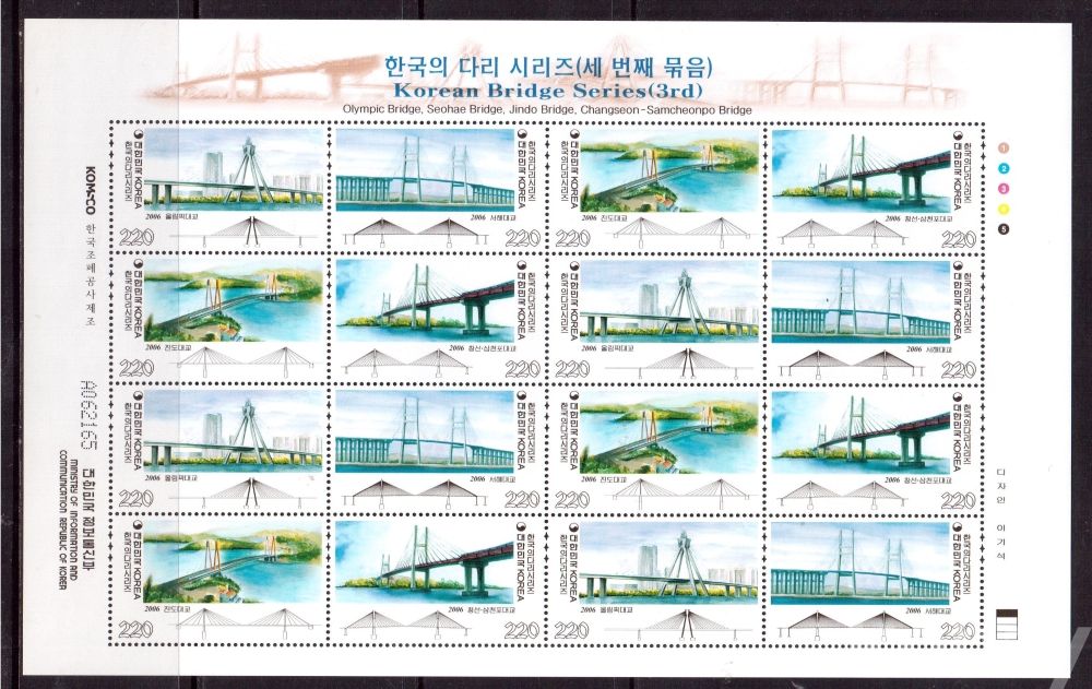 (한국전지) 2006.9.26 한국의 다리시리즈(세번째묶음) sheet of 16 MNH