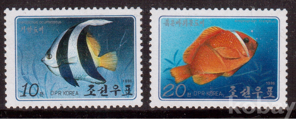 (어류) 북한 1986.3.12 선물물고기 2완 MNH