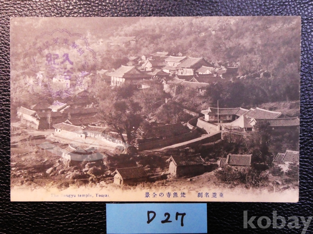 ▣근대한국 엽서(진본): 부산 동래 명찰 범어사의 전경, 조선 동래온천 입욕 기념인 날인/매우 희귀/일제강점기 사진엽서,그림엽서,회엽서. D27