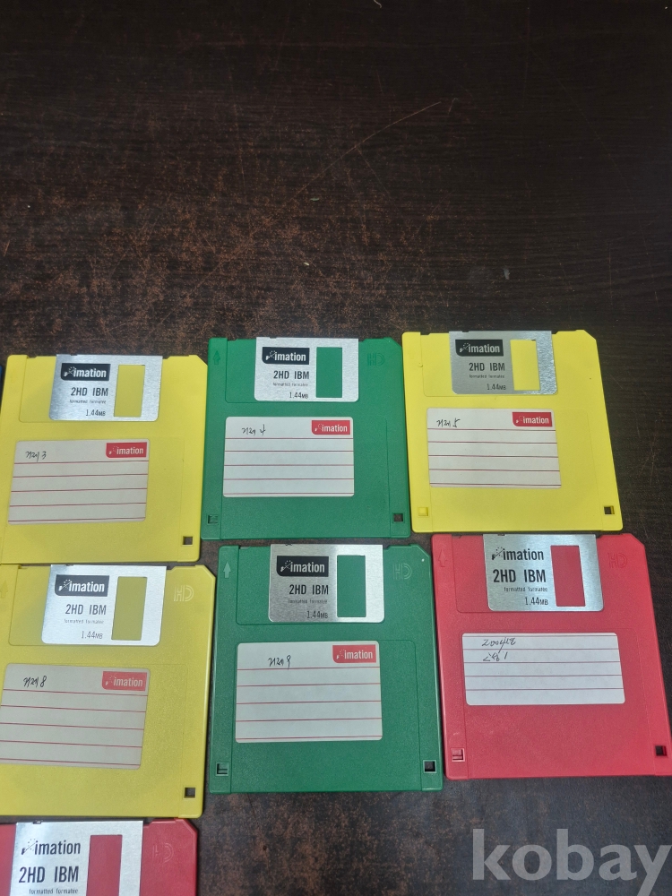 1990-2000년 칼라풀 플로피 디스크 12점과 투명 케이스 포함 10*4.5*10