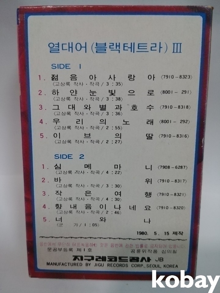 1980년 희귀 열대어 가수 가요 카세트 테이프