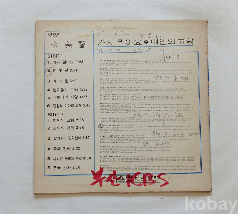 | 자켓상태 | EX : 약간의 마모, 모서리 찢김 존재 | 음반상태 | NM : 개봉했으나 미사용급, 스크래치 없음 | 발매정보 | 알수없음 | 가사지여부 | 무 |