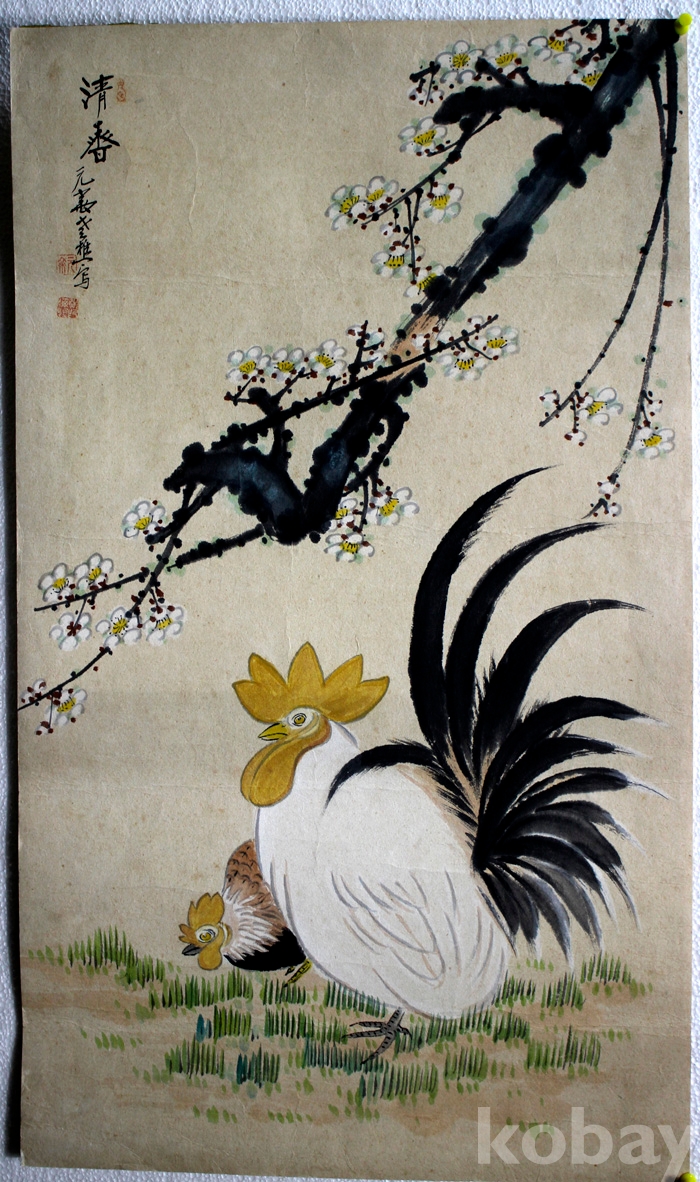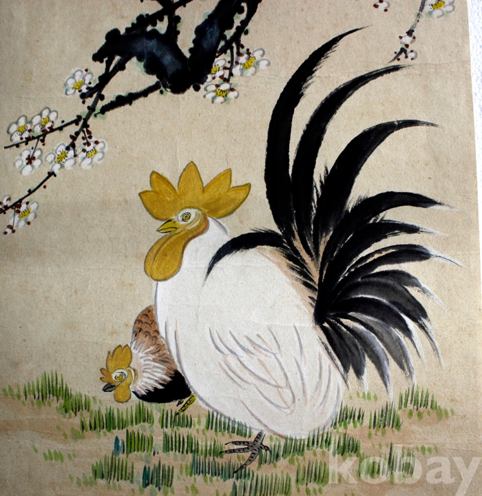조선미술전람회 입선작가인 元齊(원재) 정해준의 작품 - 매화꽃 아래의 닭