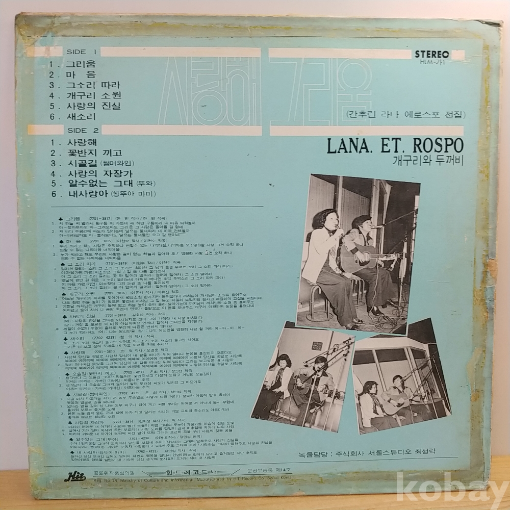 | 자켓상태 | VG : 주름, 접힘, 모서리 찢김 다수 | 음반상태 | VG : 생활 기스 다수, 가벼운 노이즈 존재 | 발매정보 | 초반 | 가사지여부 | 무 |