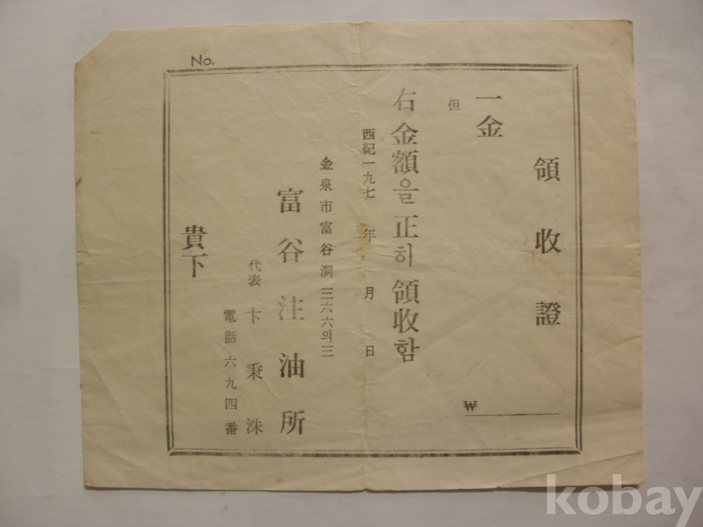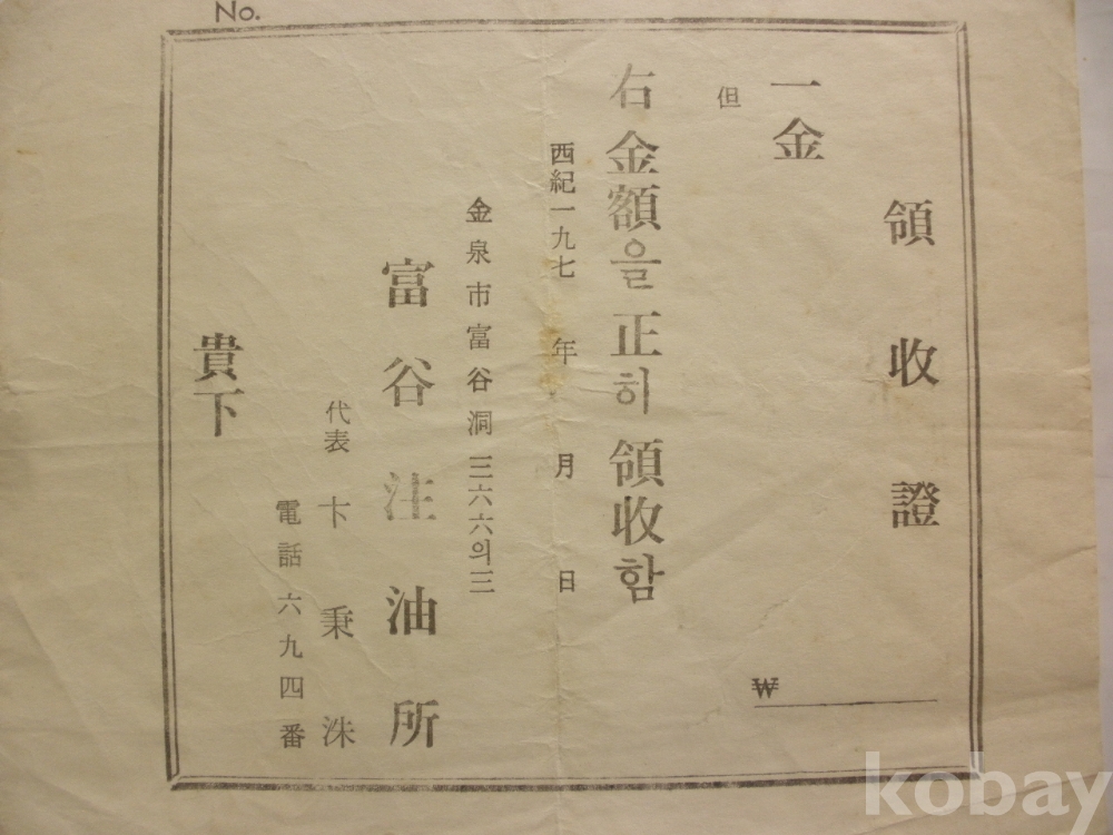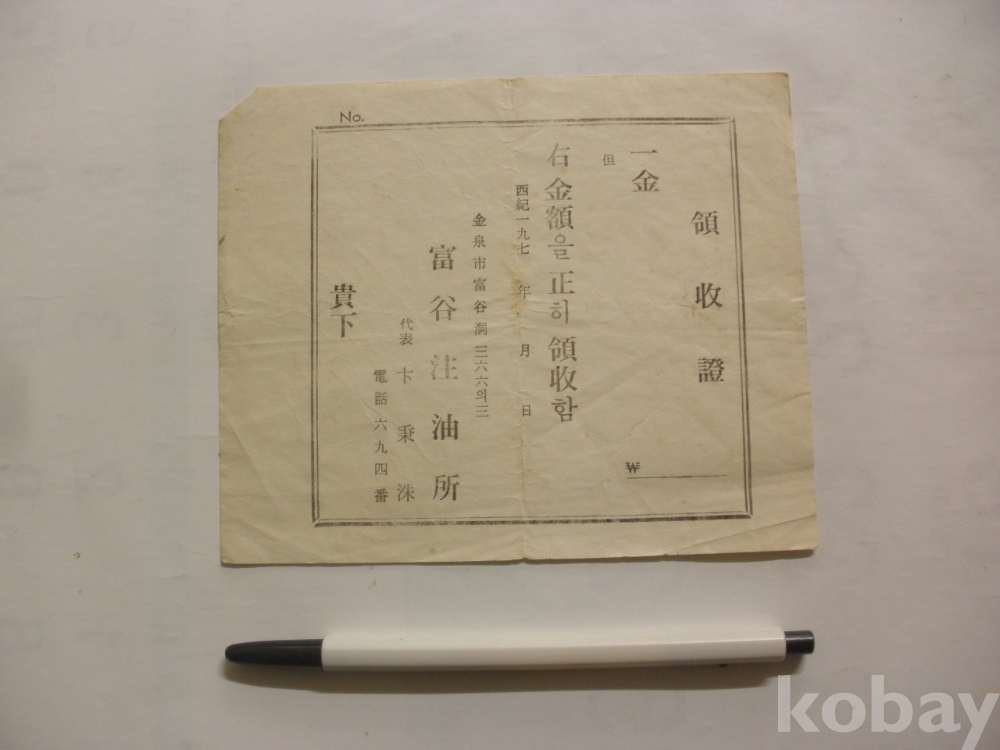 김천시 부곡주유소 - 영수증 (1970년대)