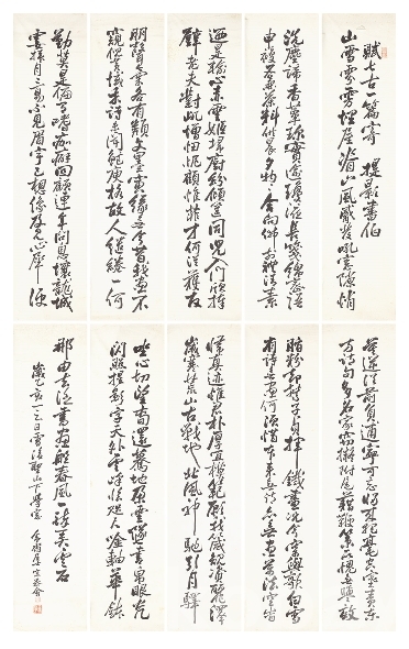 염재 송태회(1872- 1940) 행서 10곡병 (135×33×10)입니다.