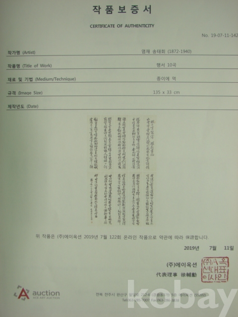 약력은 사진 참조. A – 옥션 작품보증서 있음.