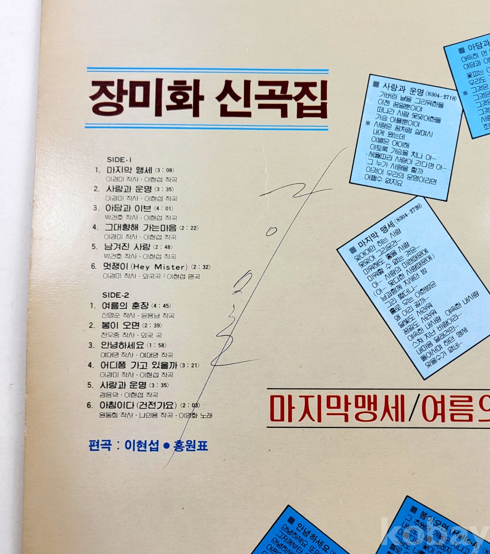 물 품 명 | 장미화 / 마지막 맹세, 여름의 훈장 / 1983년 초반 / 대성음반 |