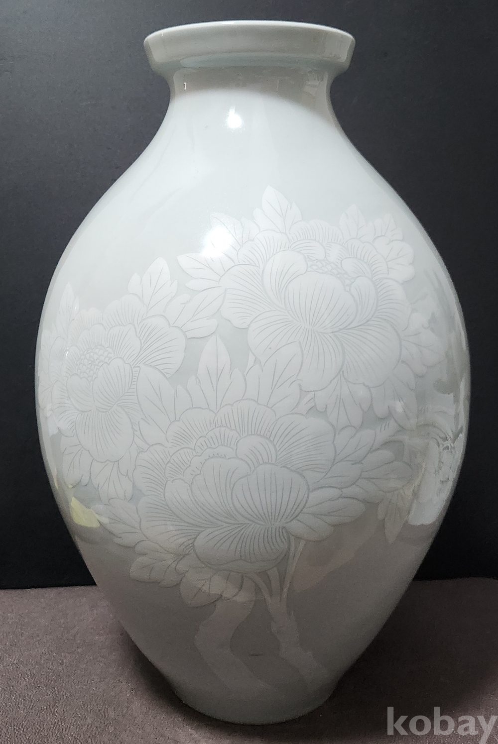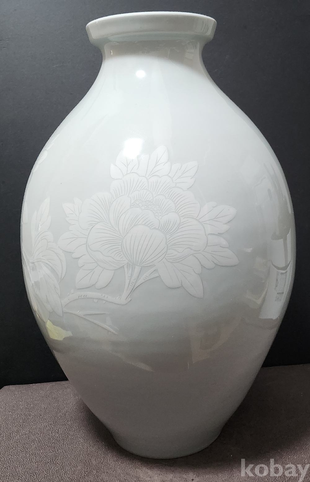 백자음각모란문대호 白磁陰刻牡丹紋大壺 < 도예가 수결 작품 >