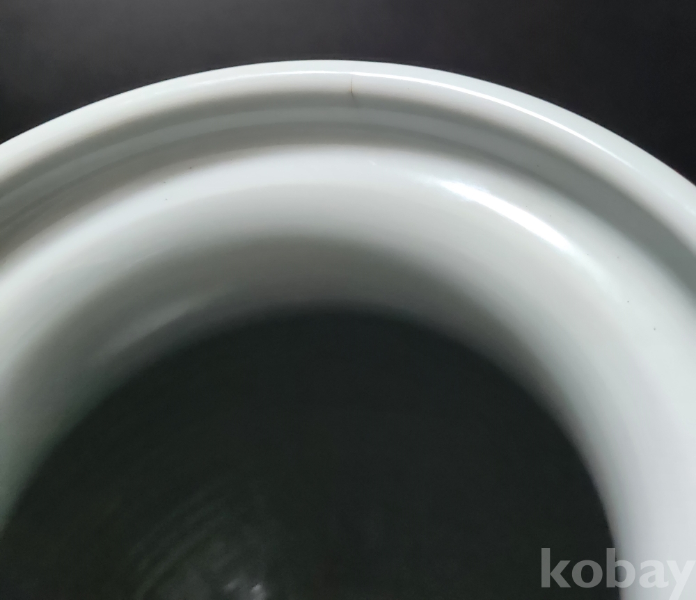 충격이나 훼손된곳 전혀없는 작품으로 구연부에 도자기 구울때 생겨난 가마유가 한부분 있습니다