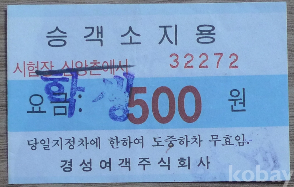 경성여객 500원 학생 승차권