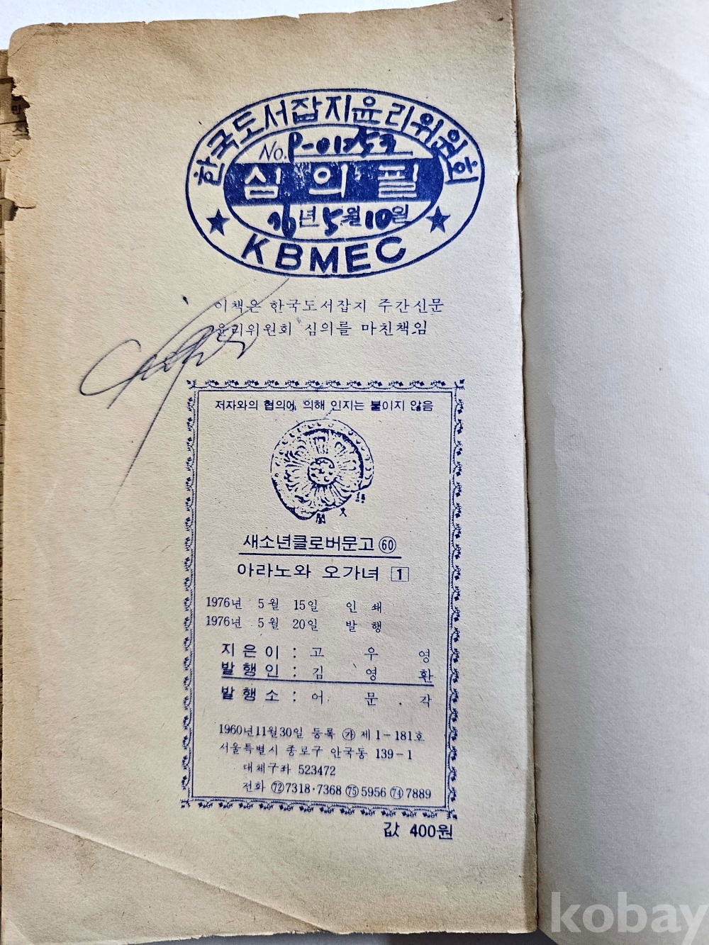 물 품 명 | 아라노와 오가녀 1편 / 고우영 만화 / 1976년 / 어문각 |