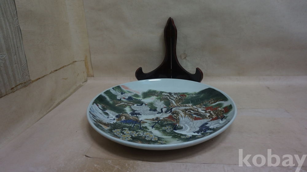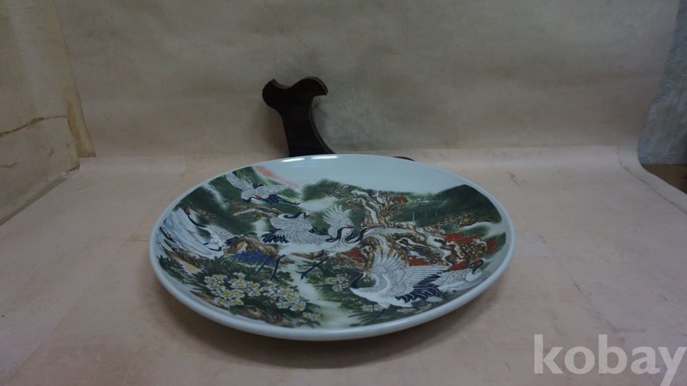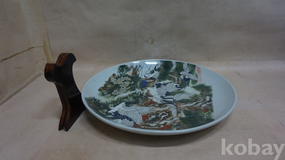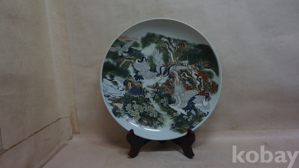 ◈◈작품도자기../백자../채색 진사,송.학.초화문ㅡ''대형 반 한점◈◈